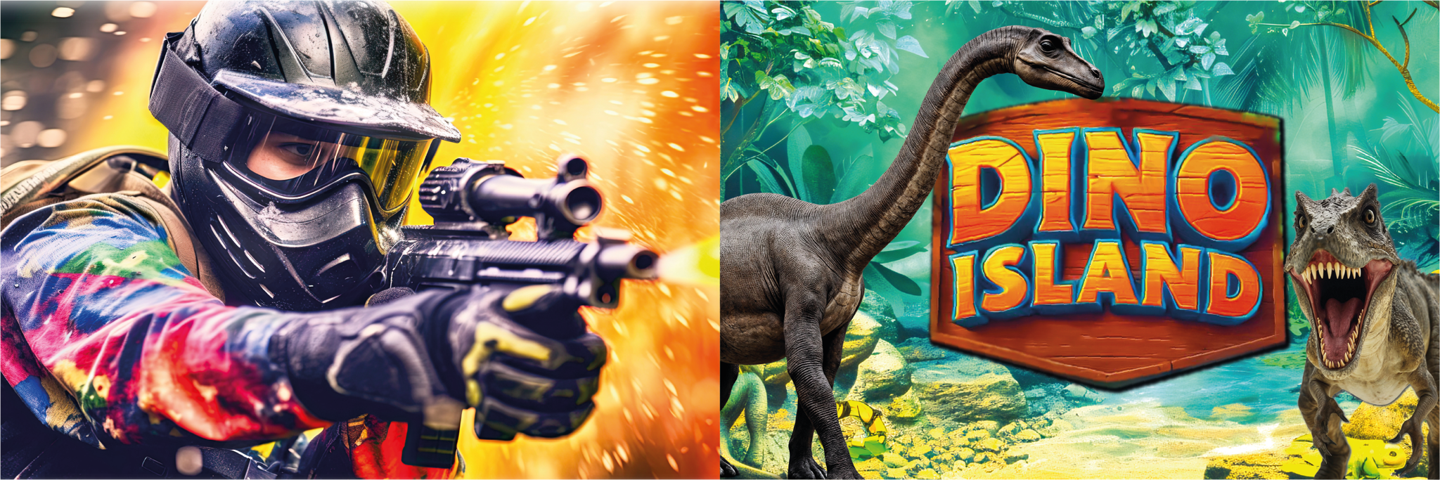Parc de loisirs multi-activités : paint ball/laser game, parcours Dino Island, manèges, trampoline, kart à pédale, structures gonflables, jeux aquatiques…