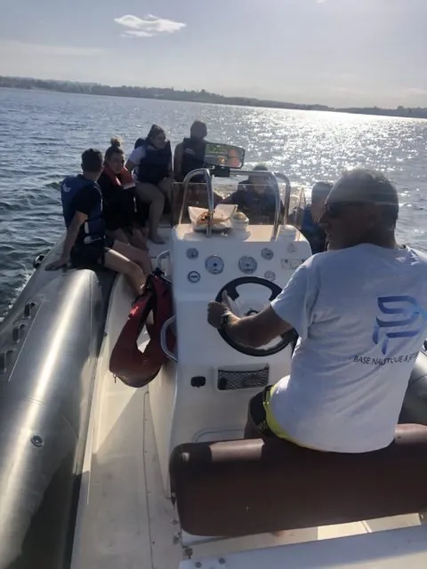 Vous montez ensuite dans le semi-rigide, muni de votre gilet de sauvetage (fourni). Le capitaine énonce les dernières consignes et quitte le ponton.