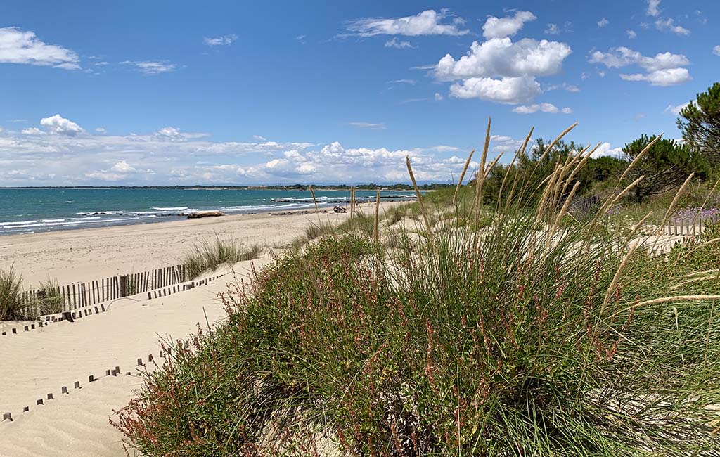 La plage de la Tamarissière est une longue plage adossée à la pinède et la plus sauvage de la commune d’Agde.