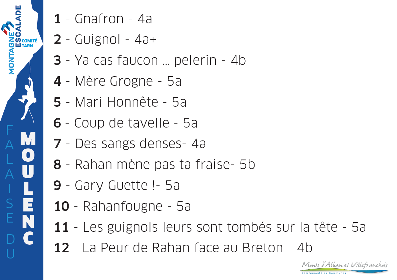 Pôle nature de Mont-Roc (Pôle Dadou) avec le sentier « Mont’4Roc » de 6,5 km accompagné du sentier du Calvaire, pour une distance totale de 8 km donnant ainsi accès aux 4 pôles d’escalade du site de Mont-Roc. (Plus de 180 voies)