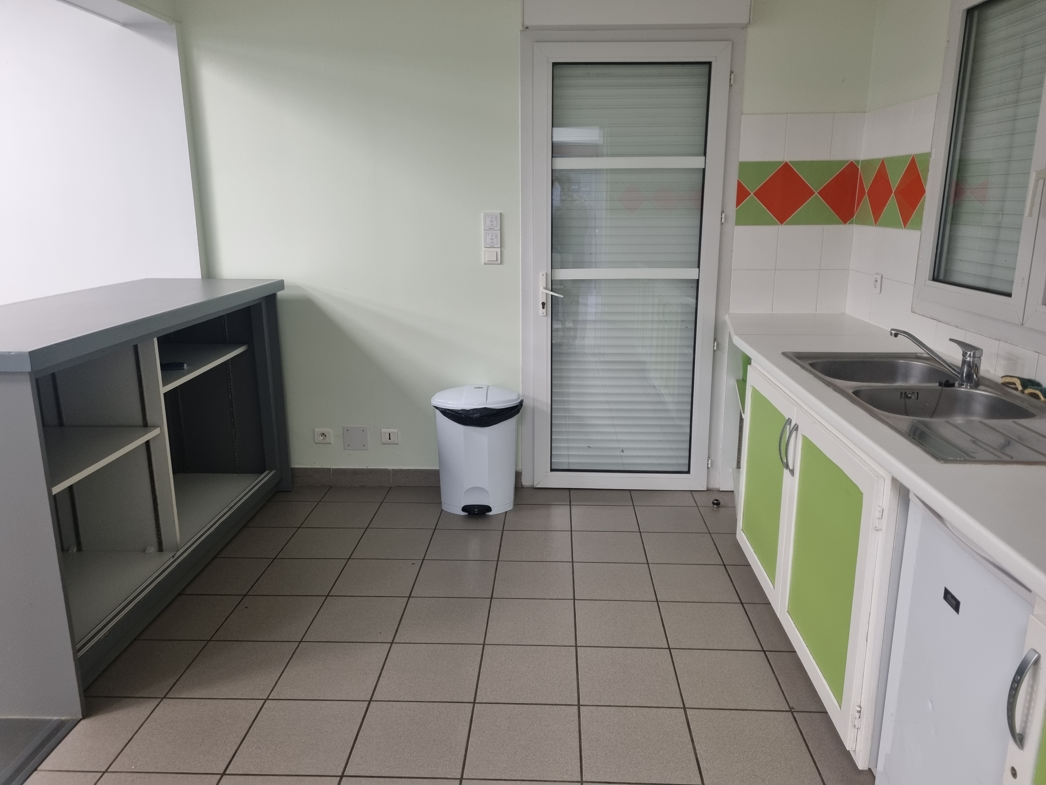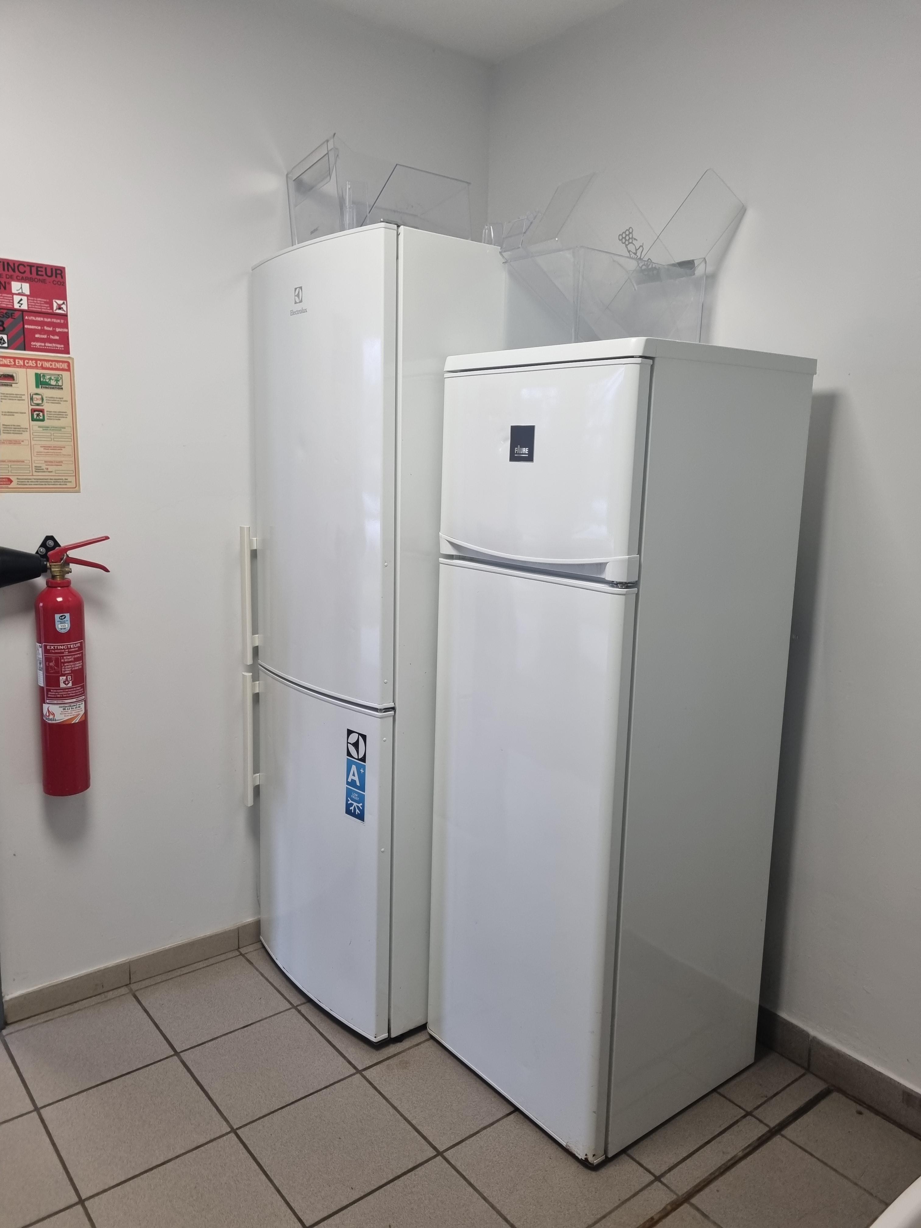 Les équipements comprennent un coin cuisine (non équipée pour cuisiner) avec deux grands frigidaires et un petit frigidaire « top », un comptoir bar, deux WC et deux urinoirs.