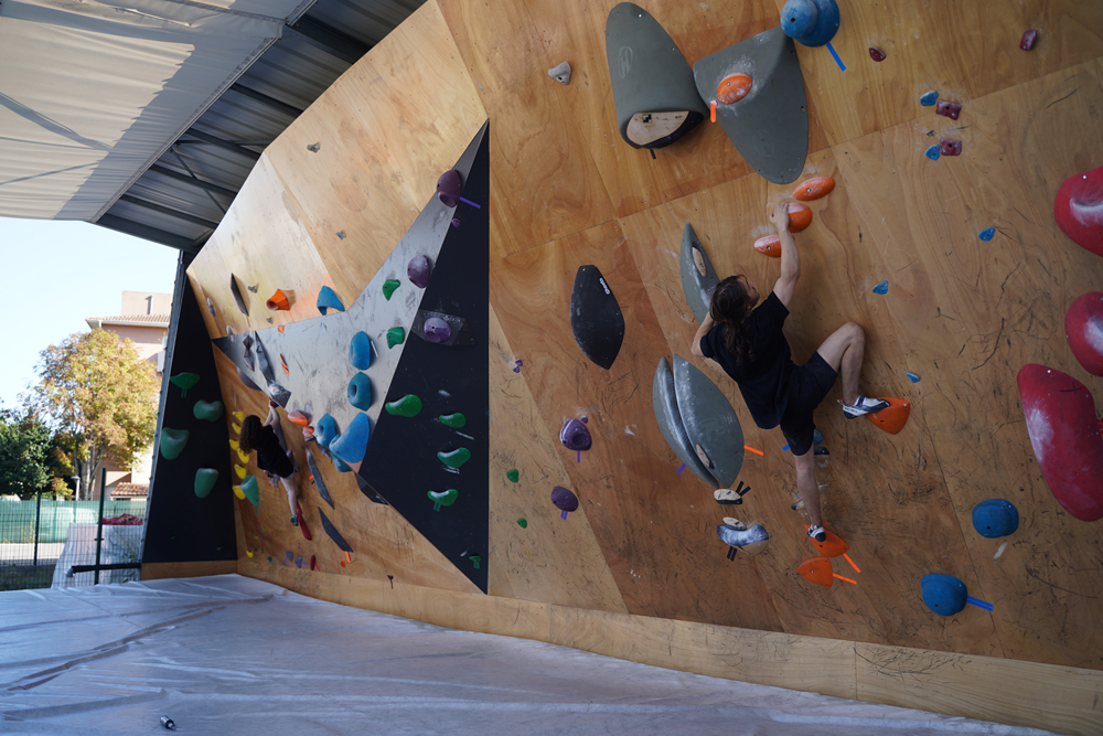 SOLO Escalade Toulouse vous propose 2400m² de surface grimpable en intérieur et extérieur, uniquement en bloc. Des centaines de passages , pour toutes et tous, de « ma première grimpette » à la compétition au plus haut niveau, le tout dans un espace climatisé. Dans notre salle vous trouverez des blocs de niveau 3c à 8b+, pour s’adapter à tous les niveaux.