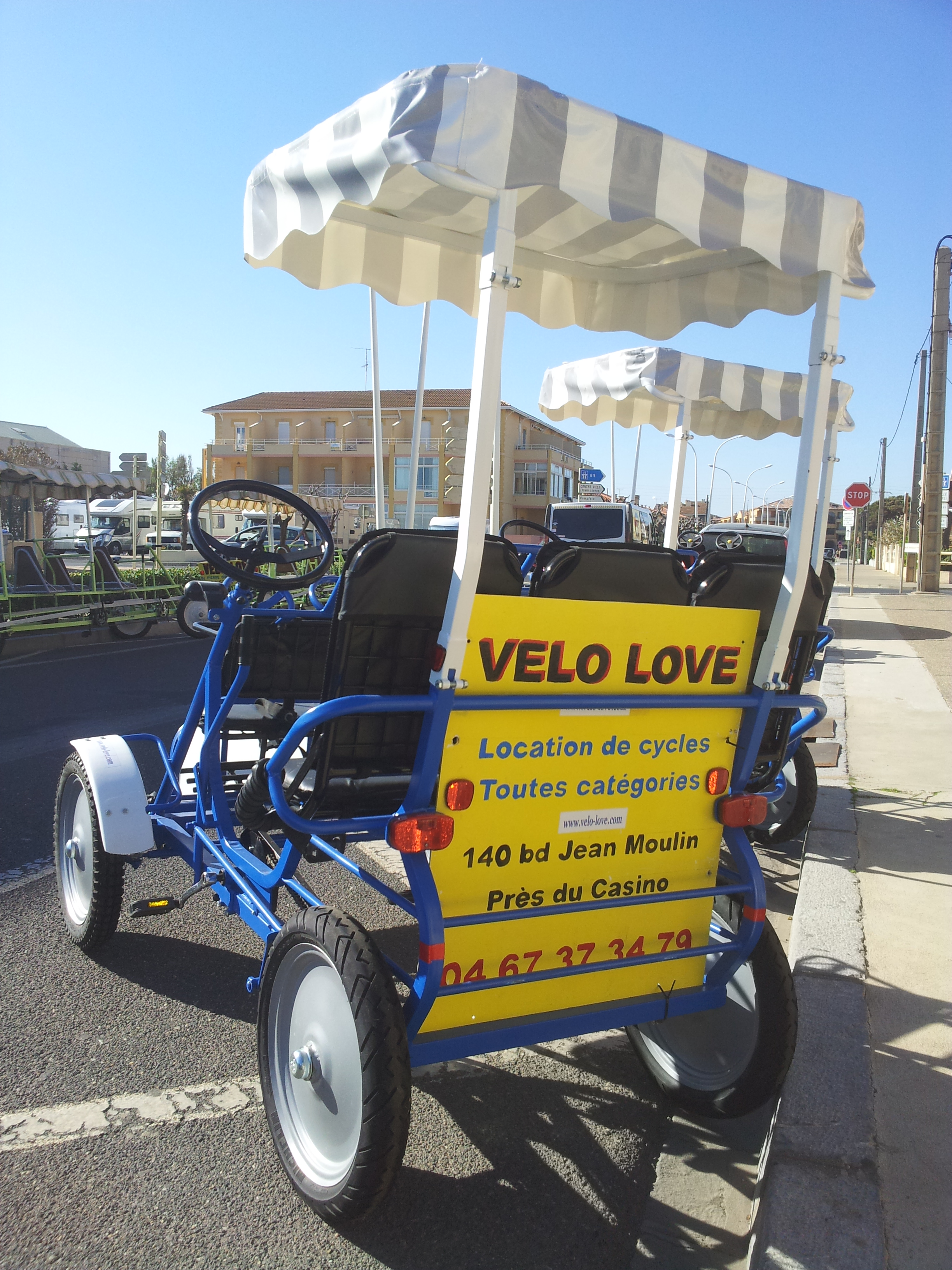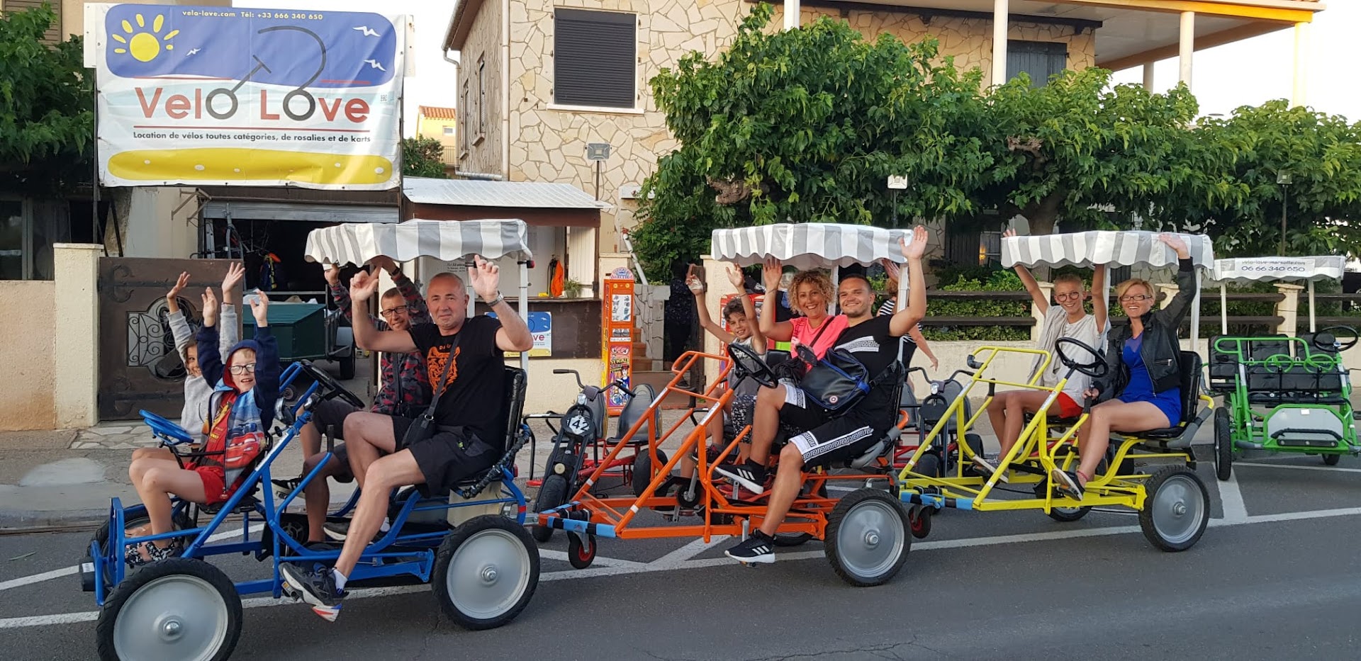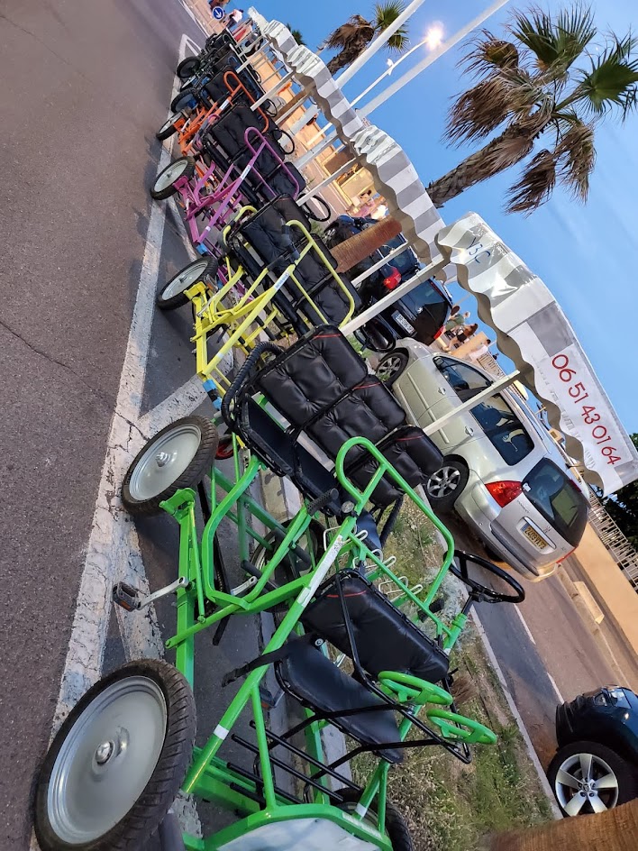 A votre service depuis 50 ans, à proximité du Casino. Location de vélos enfants et adultes, remorques, VTT, rosalies de 2 à 14 places, kart duo. Réservation par courriel ou téléphone de avril à juin. Chèques vacances acceptés. Ouvert 7j/7 du 01/07 au 31/08, pendant les vacances scolaires et week-ends de printemps et de septembre.