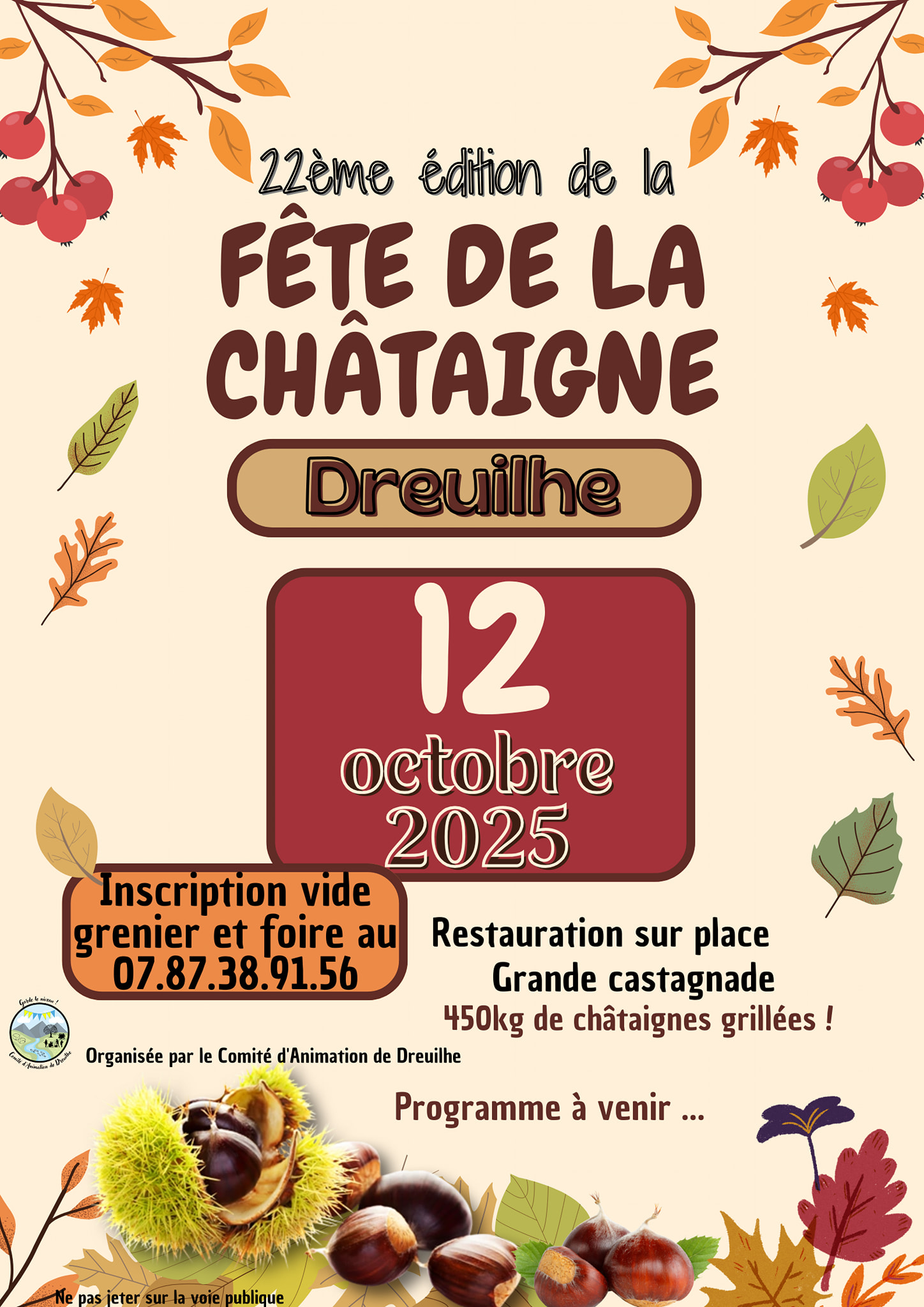 Le 12 octobre, nous vous attendons pour la 22e édition de la Fête de la Châtaigne à Dreuilhe !