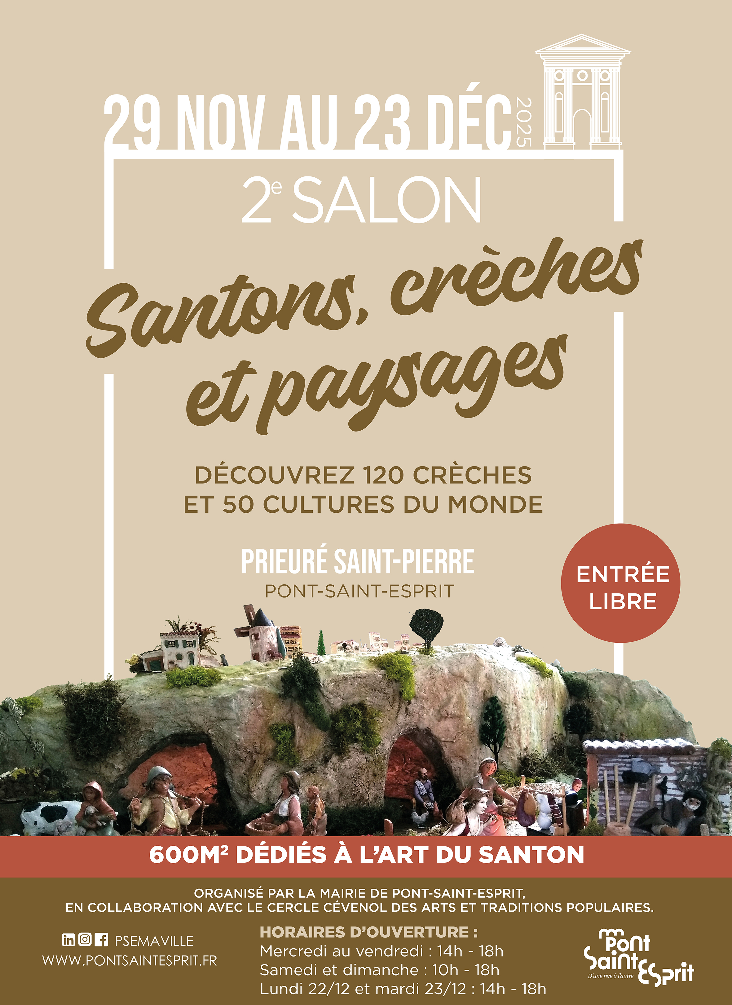 Plusieurs animations sont prévues tout au long du salon. Les visiteurs pourront découvrir un mur d’images retraçant l’histoire de la crèche, des premiers siècles à nos jours, participer à des visites commentées sur rendez-vous, rencontrer des santonniers et échanger, découvrir la fabrication de santons à travers des ateliers pratiques et bien plus encore. Pour les passionnés et les personnes en recherche d’idées cadeaux, une petite boutique de santons vendant des créations artisanales sera installée au cœur du Prieuré.
