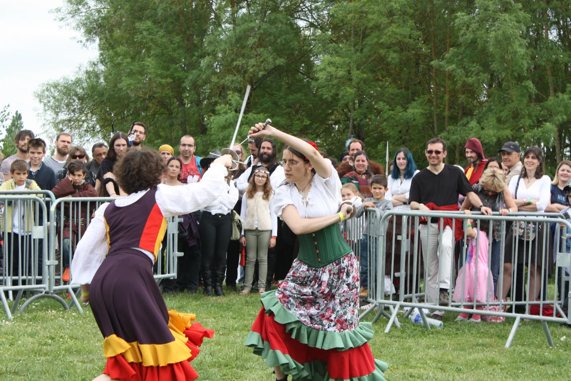 À travers l’usage de dagues et de rapières, les démonstrations s’inspirent de traités historiques pour restituer des gestes martiaux précis et authentiques.