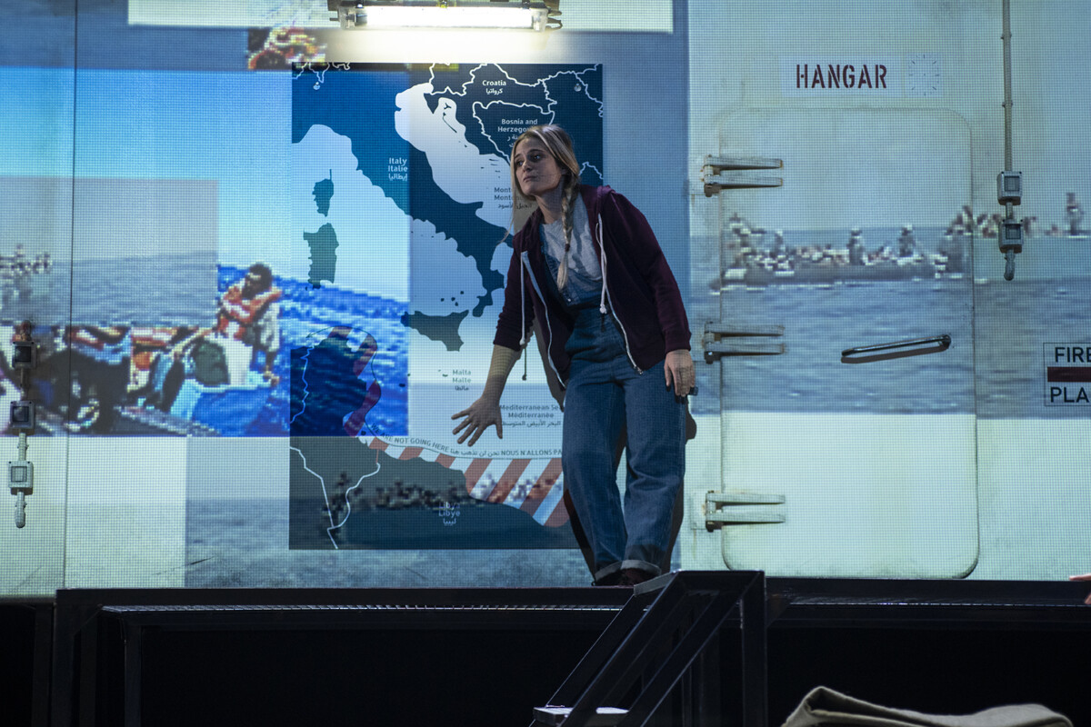 Ils y ont posé des questions, appris des histoires, découvert l’engagement complexe des sauveteurs en mer, les règles et les impuissances en la matière, rencontré des gens en colère et d’autres qui font avec. Ils en ont fait une pièce documentaire et documentée, qui croise les images et les langues parlées à bord, les urgences et les désillusions. Un puissant oratorio laïc, politique sans pathos et simplement humain, interprété sur le plateau par Nicola Borghesi et par les membres de la mission eux-mêmes.