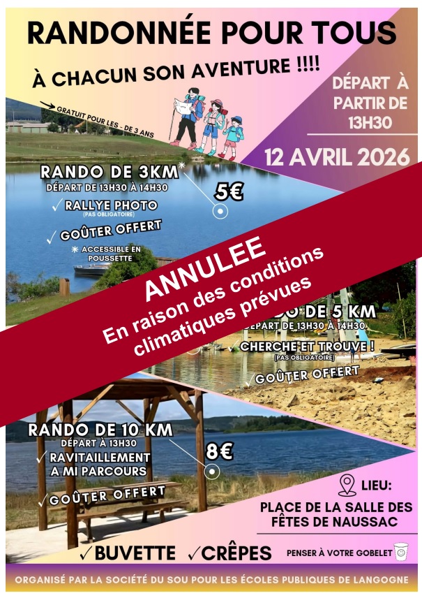 3 randonnées au départ (13h30) de la salle des fêtes de Naussac :