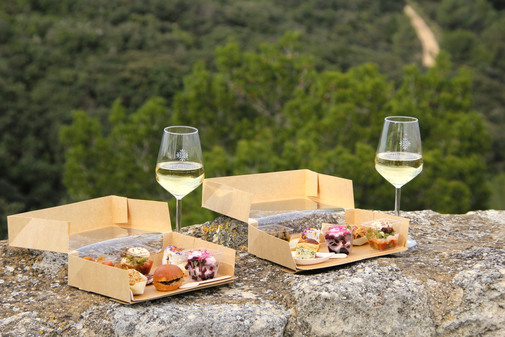 L’expérience se déroule de 19h à 21h et comprend la visite du donjon, un commentaire historique sur la forteresse, deux verres de dégustation (vin ou jus de fruit), une box traiteur individuelle au choix – classique ou végétarienne – ainsi qu’un verre à vin sérigraphié de 35 cl (inclus avec la box adulte uniquement).
