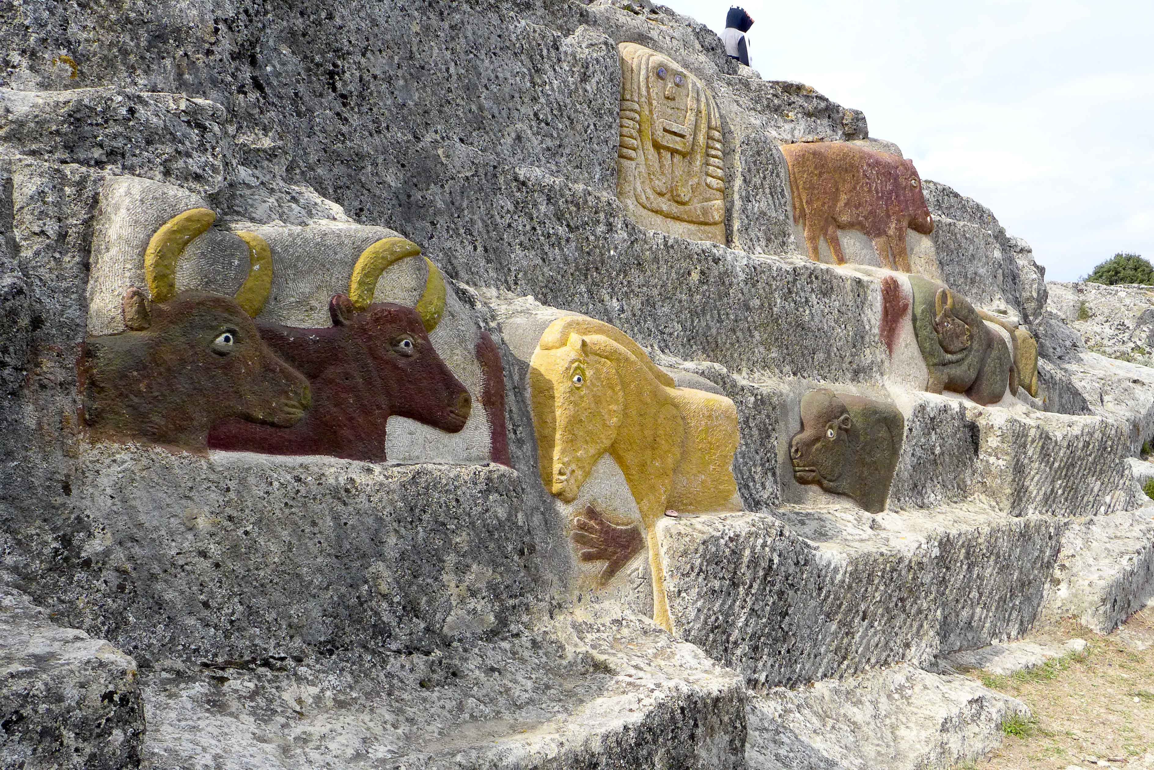 Sur notre route, le pigeonnier du XVIIe siècle, le village de Garrigues et la chapelle de Ste-Eulalie, ensuite en poursuivant notre chemin, le sentier nous conduit aux roches sculptées érigées dans une ancienne carrière par Marcus artiste de Saint-Chaptes.