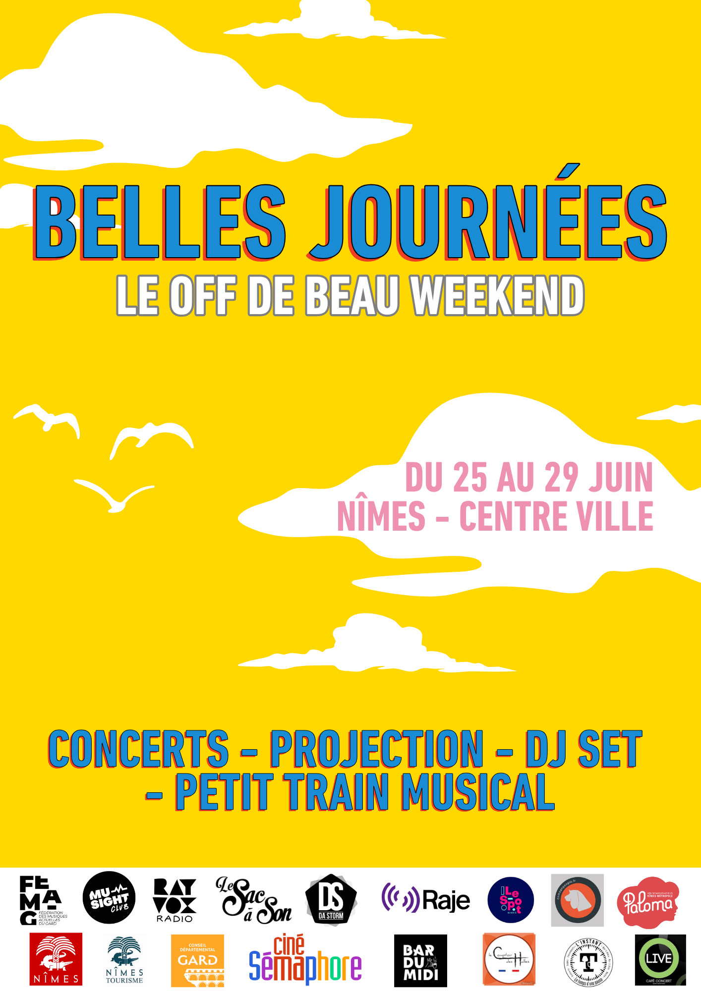 Festival « Belles Journées » le Off de Beau Week-end. Neuf structures culturelles Nîmoises s’associent pour faire vivre la musique indé en centre-ville de Nîmes.