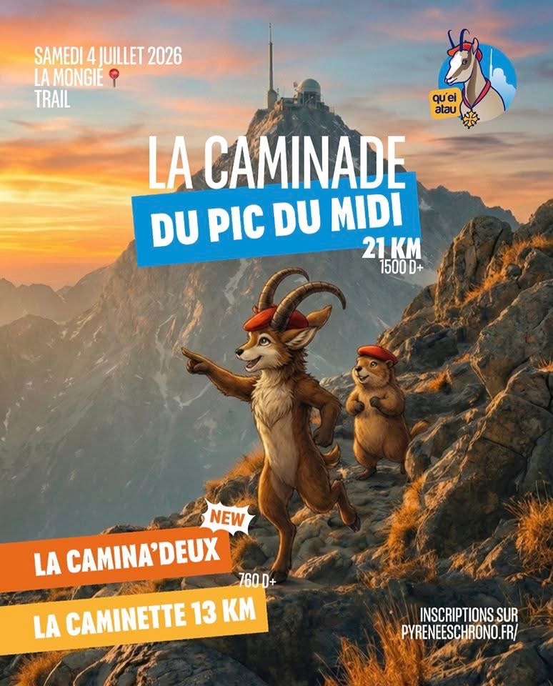 Programme : 3 COURSES : – CAMINADE || 21km – 1700D+ – CAMINETTE || 12 km – 900D+ – CAMINA’DEUX (nouveau !) || Course en DUO HI Nombre de places limitées ! Inscriptions à partir du 16 février 2026. Evènement organisé par l’association Quei Atau