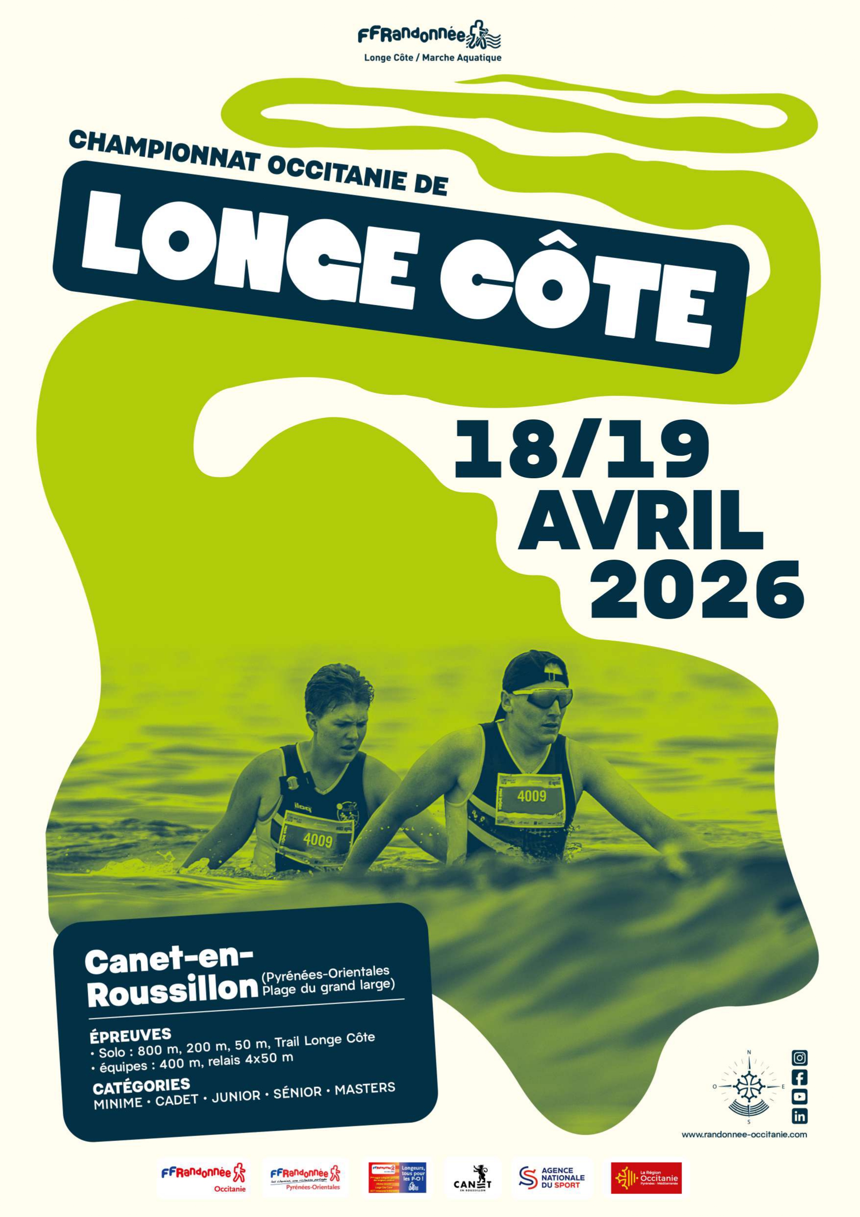 Le 11ᵉ championnat régional de longe côte 2026 se tiendra sur la plage du Forum à Canet-en-Roussillon (Pyrénées-Orientales).
