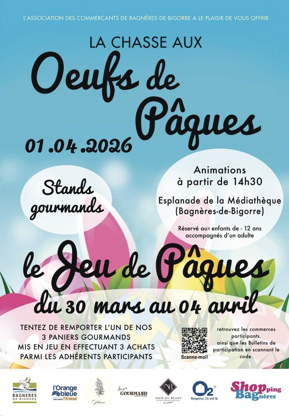 À l’occasion des fêtes de Pâques, l’Association des commerçants de Bagnères-de-Bigorre a le plaisir d’organiser une grande chasse aux œufs dans les rues de Bagnères-de-Bigorre !