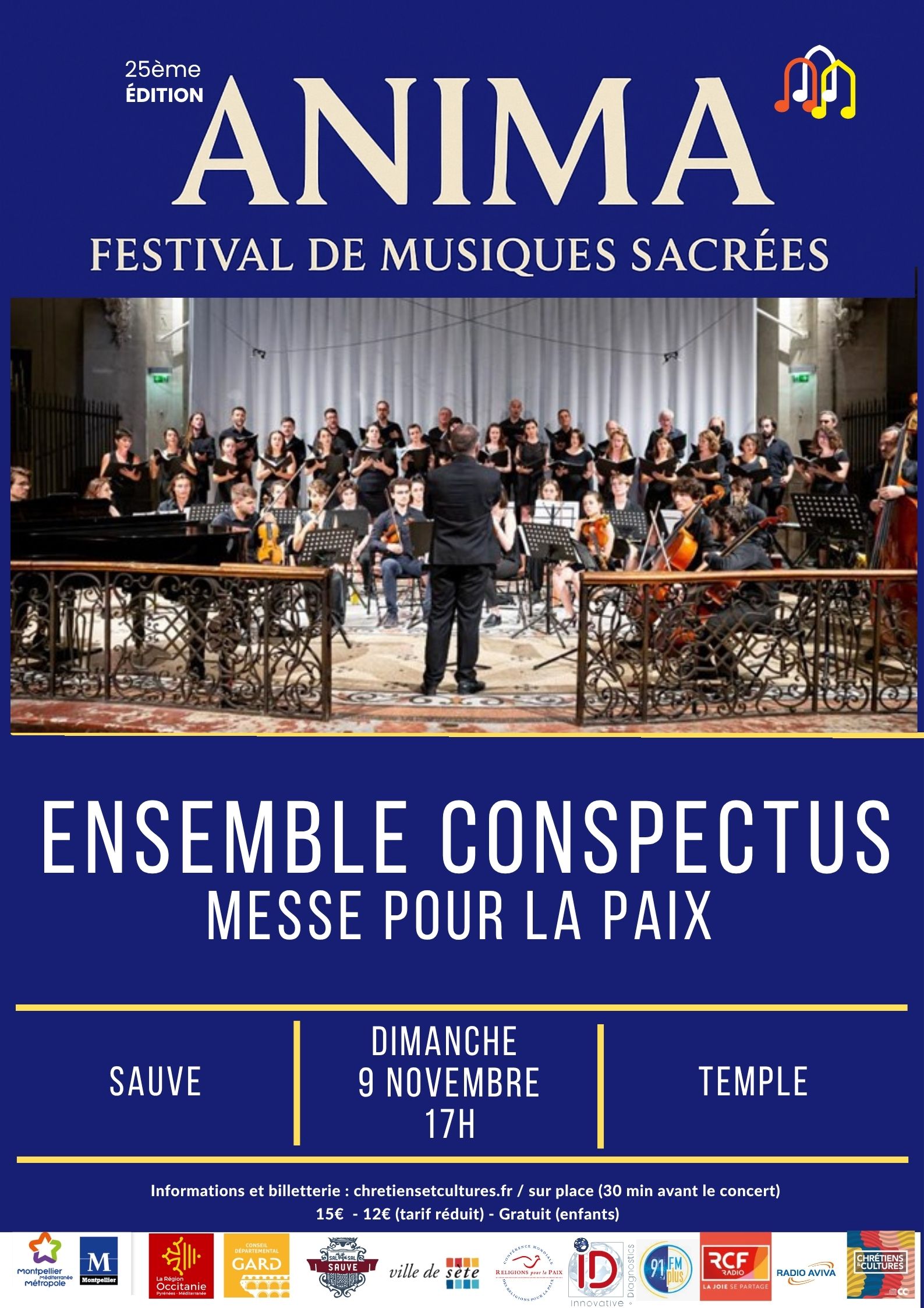 Dans le cadre de la 25e édition du Festival Anima de musiques sacrées, l’Ensemble Conspectus interprétera The Armed Man: A Mass for Peace de Karl Jenkins, une œuvre puissante mêlant textes liturgiques et extraits de différentes traditions religieuses, poèmes et témoignages du XXe siècle. Ce concert s’inscrit dans un élan de dialogue et de mémoire, et célèbre la paix à travers la force émotionnelle du chant choral et d’une partition profondément universelle.