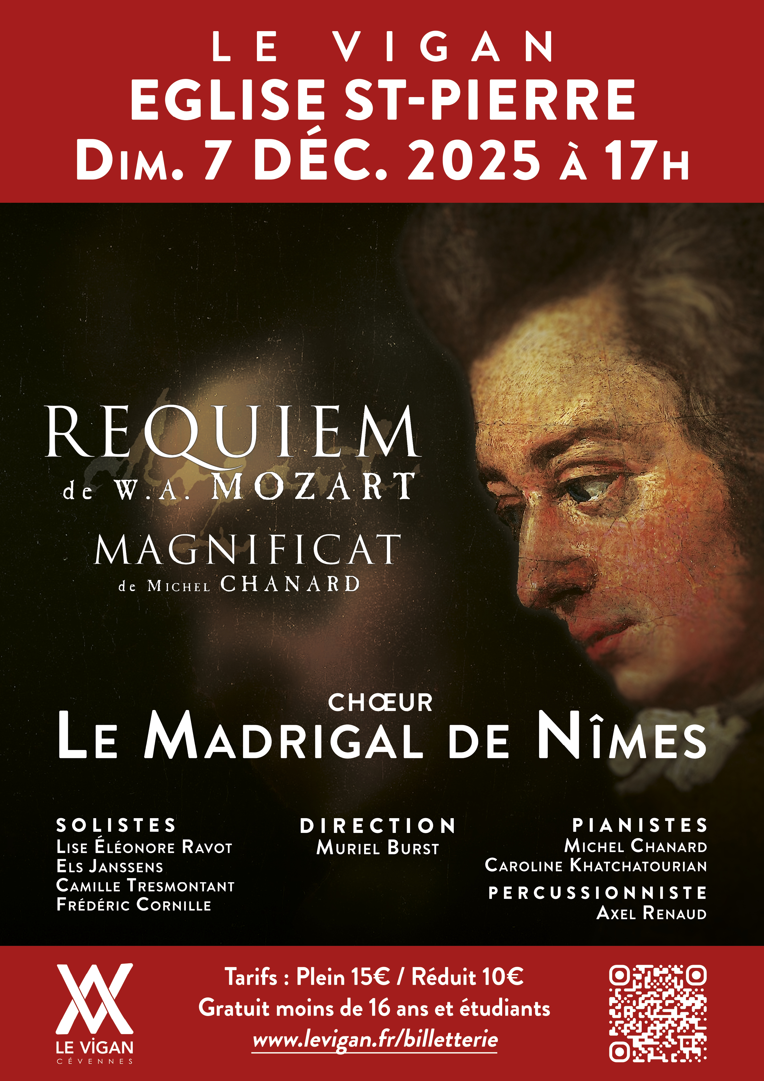 Ce chœur mixte de 62 choristes, rejoint par 4 solistes, 2 pianistes et 1 percussionniste interprètera le fameux requiem de Mozart ainsi qu’un Magnificat composé par Michel Chanard.