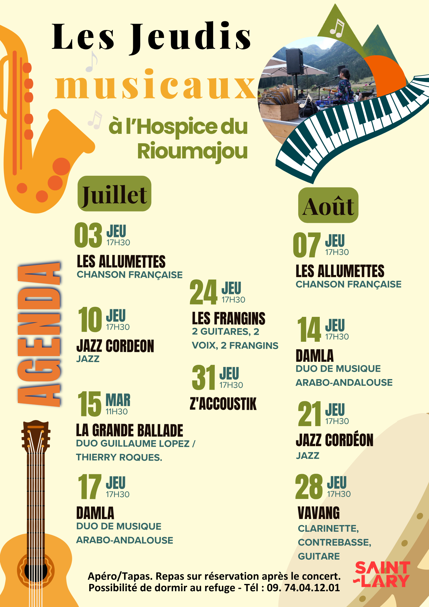 Programme : A partir de 17h30. Apéro / tapas. Repas sur réservation après le concert. Possibilité de dormir au refuge Tél : 09 74 04 12 01