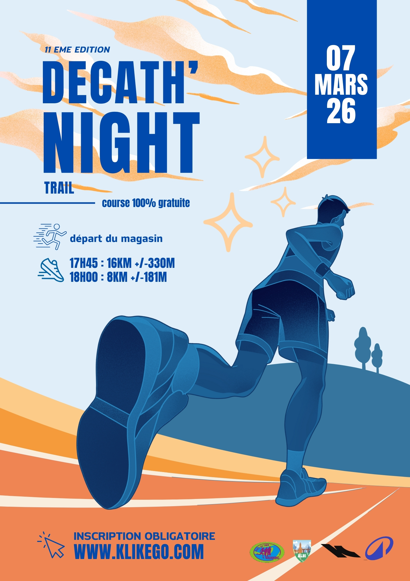 La 11ème édition de la Decath’ Night, un trail 100% gratuit, propose deux parcours : 16km avec un dénivelé de +/-330m et 8km avec un dénivelé de +/-181m. Le départ est prévu depuis le magasin Decathlon Albi.