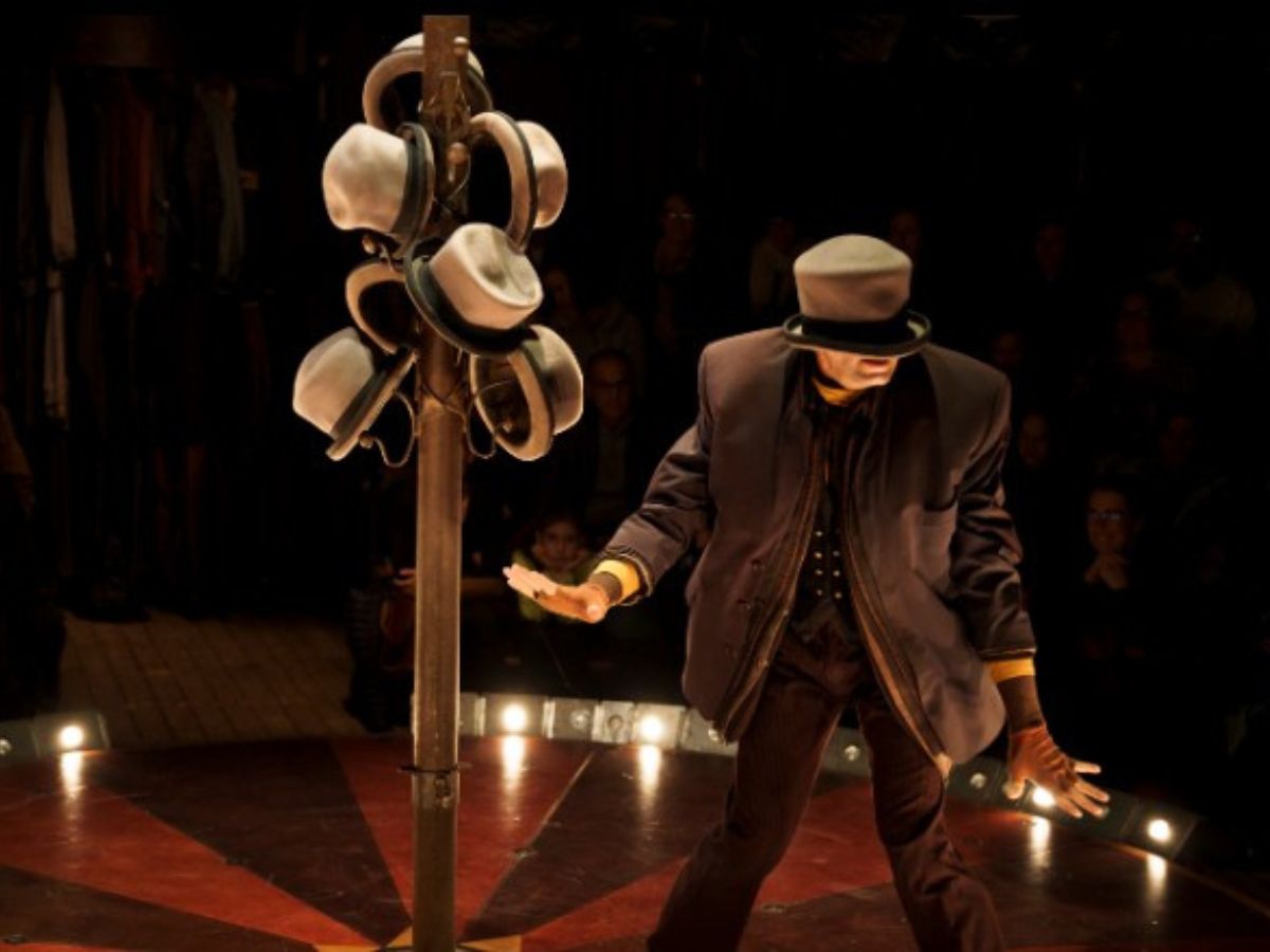 Sous un décor suspendu, sur une piste ronde et dans une arène intime, vous êtes conviés dans un univers singulier, où se tutoient maladresses et prouesses, petits riens et extraordinaire, apparence et faux-semblant. Il y aura des corps flottant et swinguant, seuls et magnifiques. Il y aura des chapeaux manipulés par un homme lui-même manipulé. Il y aura des empilements de manteaux, des déshabillages de vestes, des amoncellements de cabans, des vols de redingotes, de l’effeuillage de corsages, du déploiement de blousons, du dégoulinage de soie. Il y aura des violons, des guitares, des claviers, des percussions, des objets insolites, des heureux accidents, des êtres fanfares et des corps orchestres.
