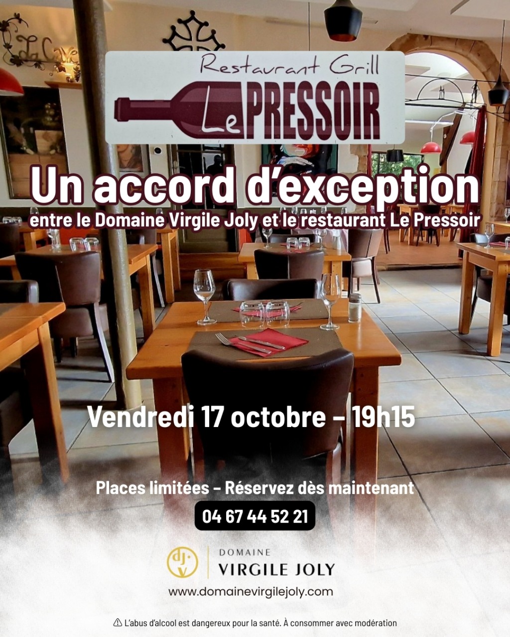 Plongez dans une expérience unique : la rencontre entre la gastronomie raffinée du restaurant Le Pressoir et les vins bio du Domaine Virgile Joly.