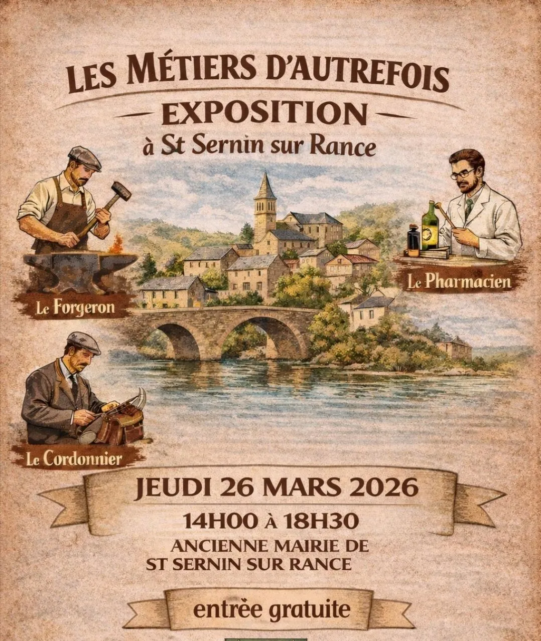 L’association Patrimoni et les élèves en BTS à Valrance vous invite à découvrir une exposition sur les métiers d’autrefois à l’ancienne mairie : objets divers sur les métiers de forgeron, cordonnier, pharmacien…