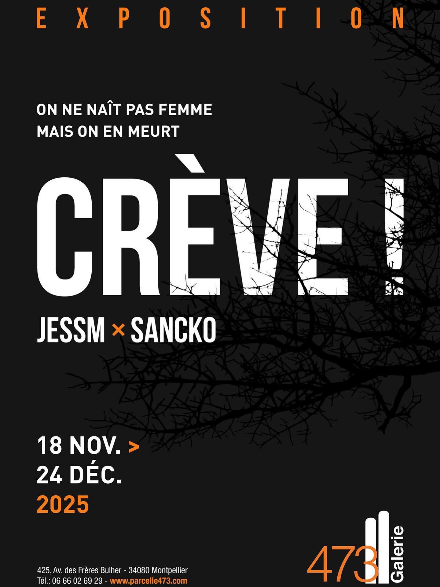 Le musée Parcelle473 accueille à partir de 19H, le vernissage de CRÈVE! , une exposition forte et engagée de JESSM et SANCKO, qui s’inscrit dans le cadre de la journée internationale de lutte contre les violences faites aux femmes.