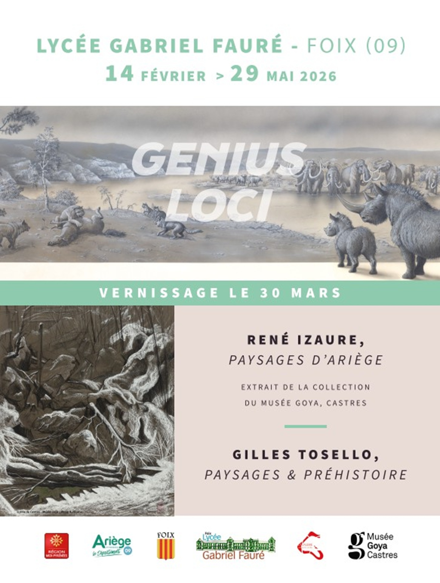L’association fuxéenne LAGALERIE09 a l’honneur et le plaisir de vous inviter au vernissage de sa nouvelle exposition GENIUS LOCI le lundi 30 mars à 17H30 au lycée Gabriel Fauré de Foix.