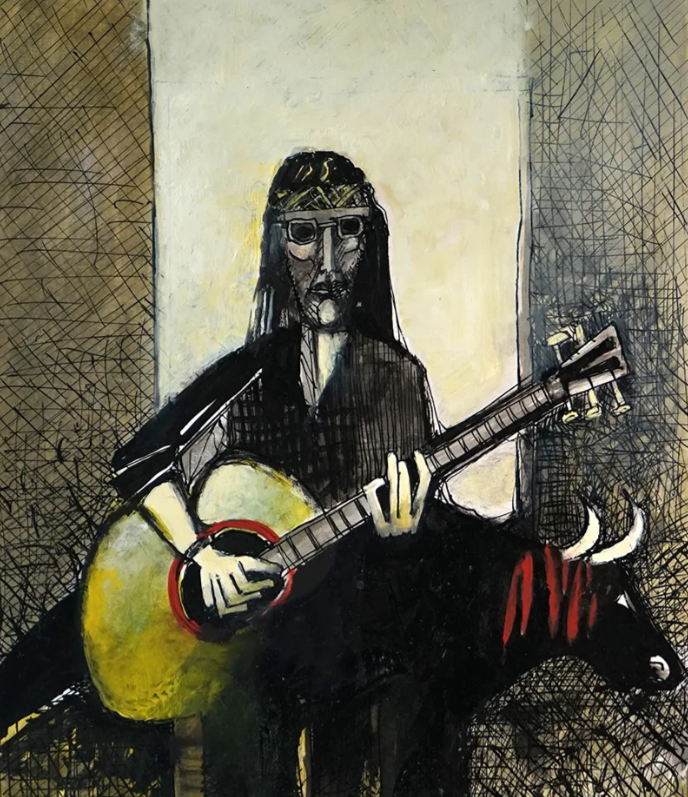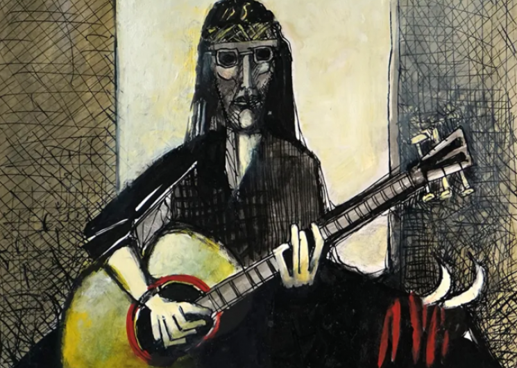Hymne graphique et sensuel aux instruments, voyage guidé d’une guitare dans la peinture, promenade onirique, paréidolie sur de vieilles planches de bois, regard nostalgique et parfois inquiet sur notre anthroposphère