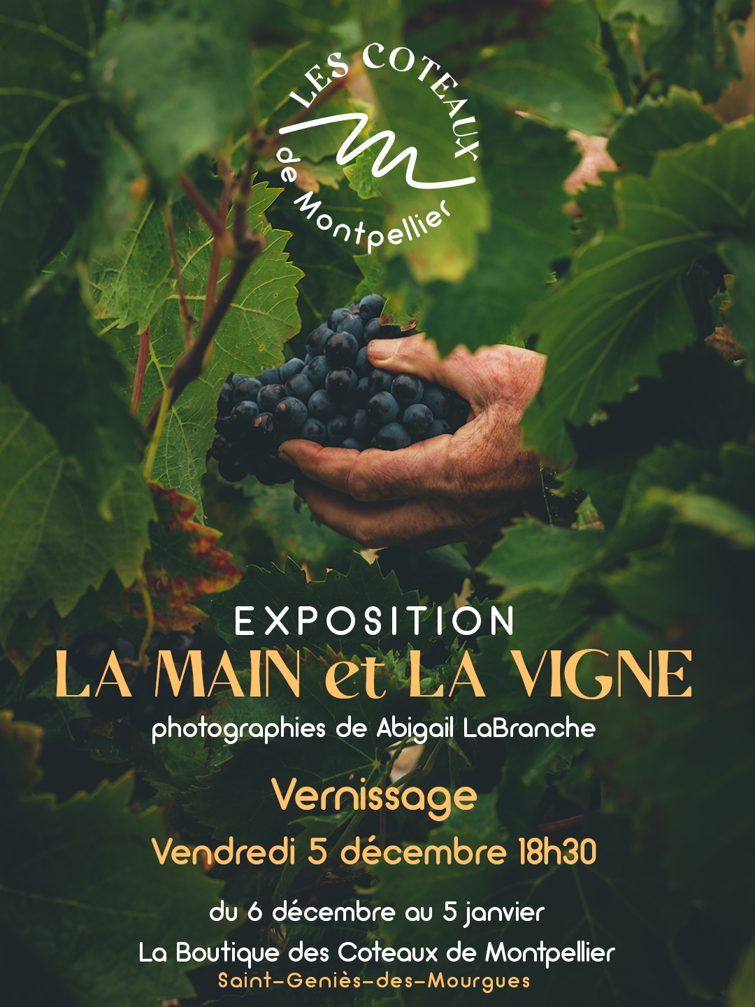 Ne manquez pas l’exposition photographique « La main et la vigne » du 06 décembre au 05 janvier 2026 à la Boutique des Coteaux de Montpellier à Saint-Geniès-des-Mourgues !