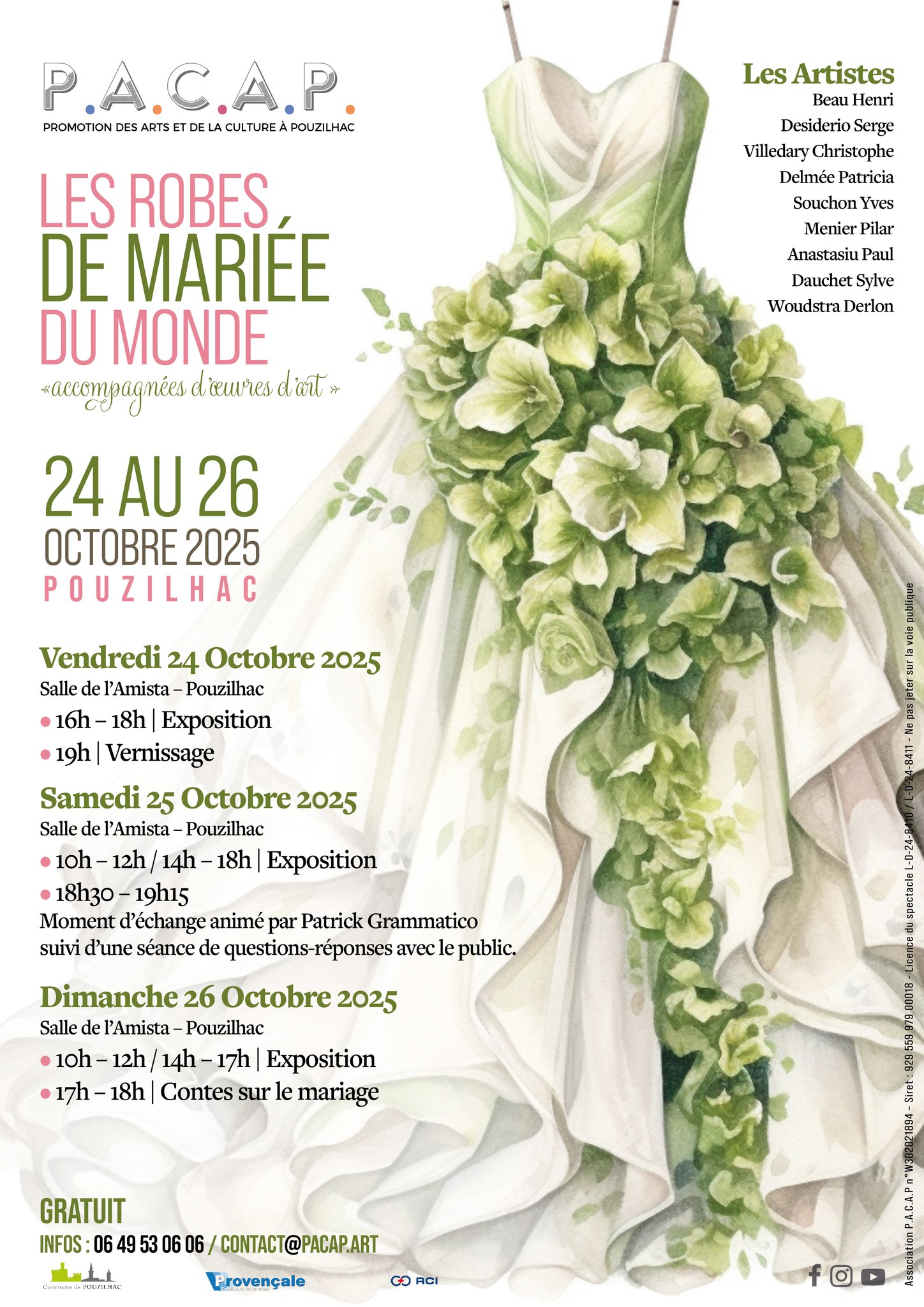 Un moment fort de ces trois jours : une discussion animée par un collectionneur passionné, Patrick Grammatico, qui vous emmènera dans un voyage à travers l’histoire du costume de mariée, d’hier à aujourd’hui. Cet échange, suivi d’une séance de questions-réponses, dévoilera les rituels et symboles associés aux mariages à travers les âges.