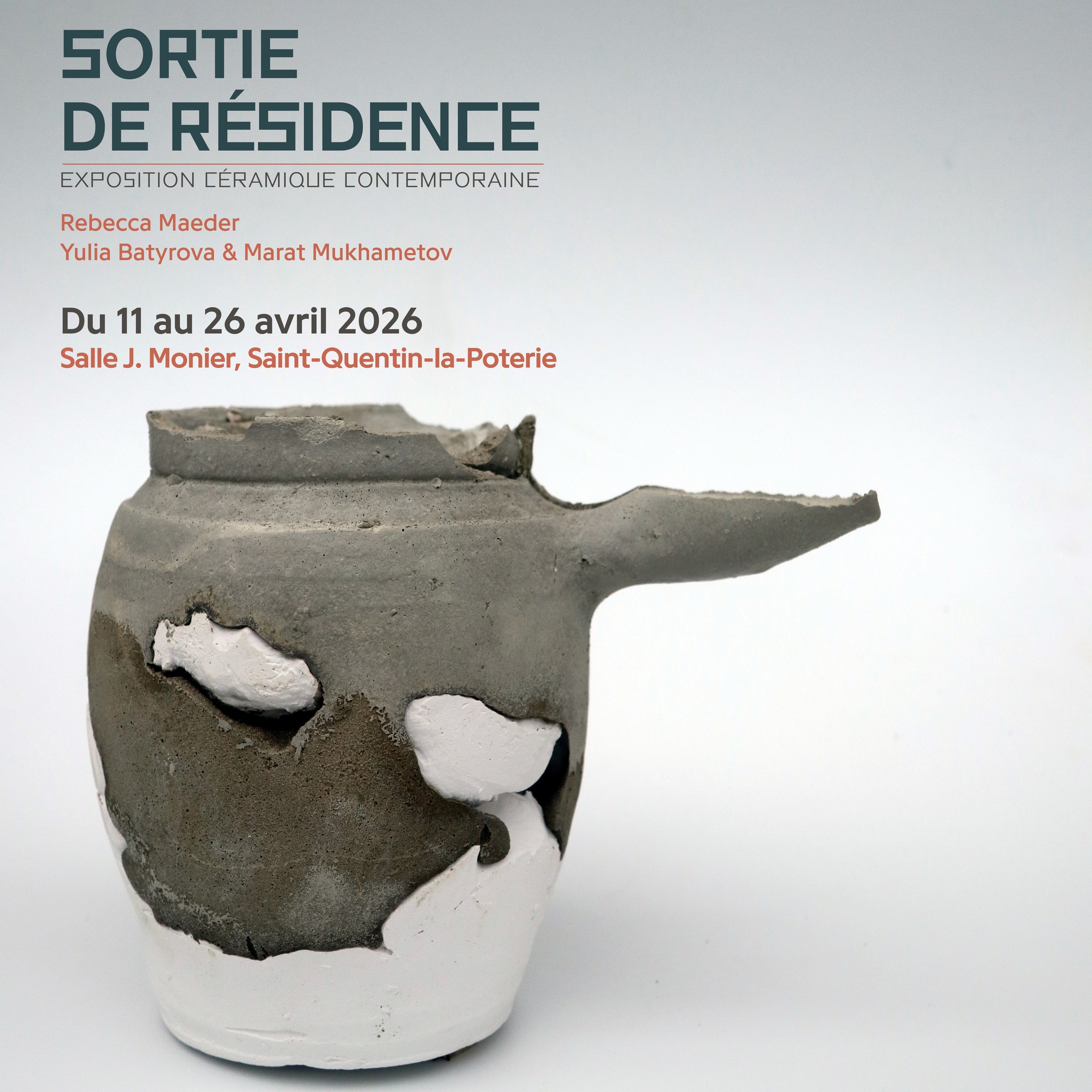 Une expo collective, intitulée «Sortie de Résidence», restitue chaque année les différents projets des artistes accueillis. En 2026, elle met en lumière 3 artistes : Rebecca Maeder, actuellement en résidence; Yulia Batyrova et Marat Mukhametov.