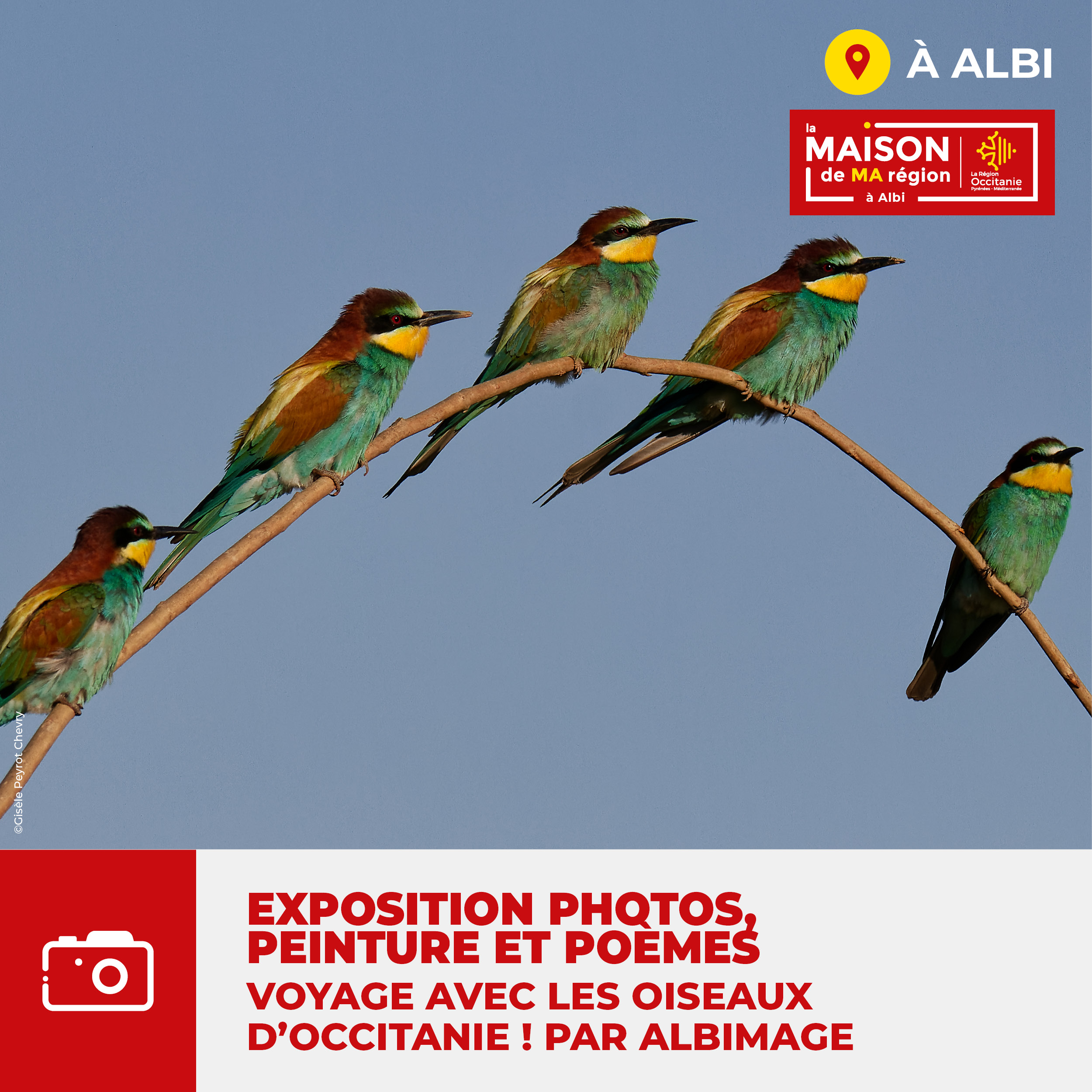 La Maison de Ma Région à Albi organise et vous invite gratuitement à l’exposition collective (photos, peintures, poèmes…) intitulée « Voyage avec les oiseaux d’Occitanie ! » par Albimage qui aura lieu du 4 au 27 novembre 2025.