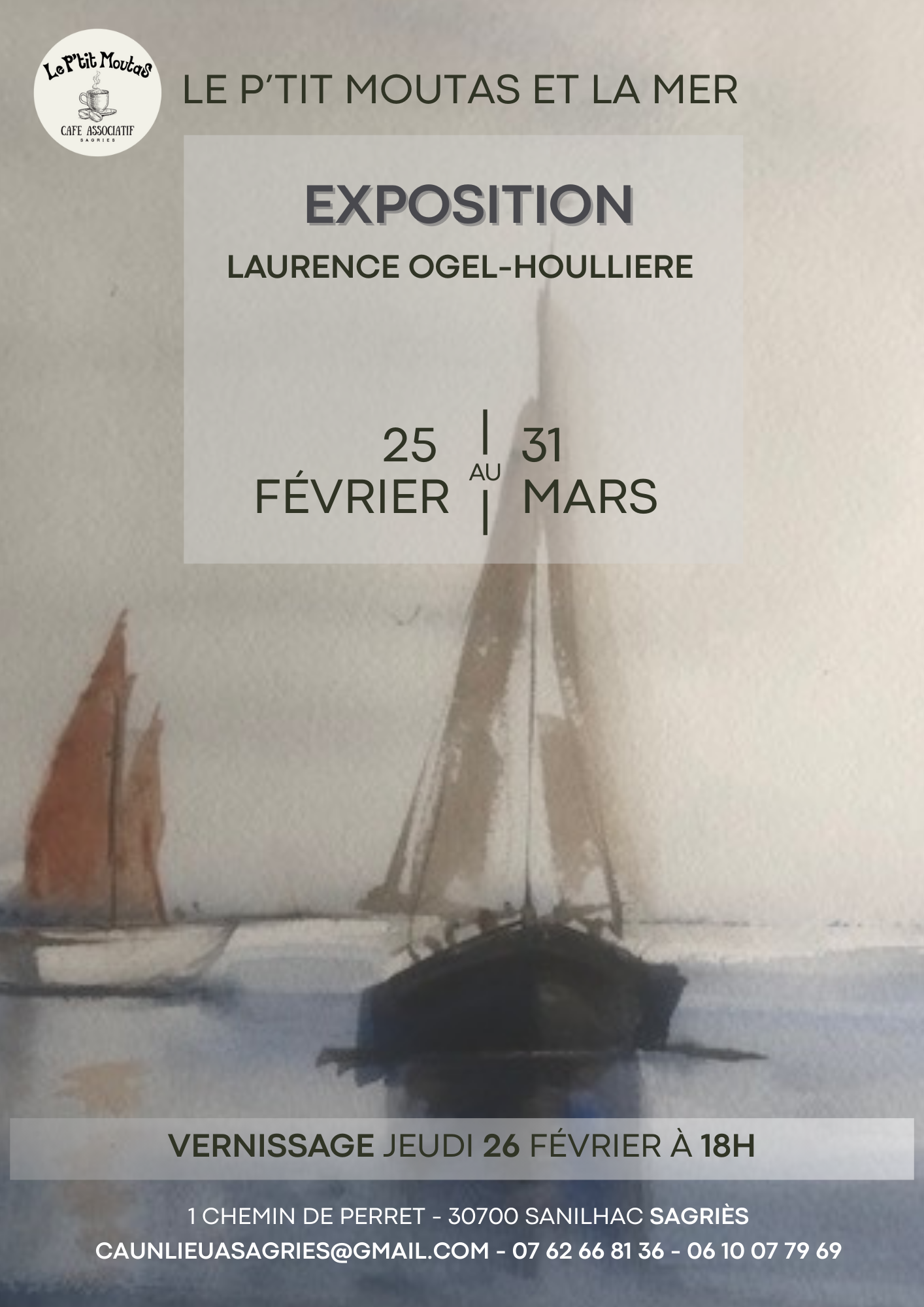 Laurence Ogel Houlliere emmène Le P’tit Moutas à la mer avec ses aquarelles marines. Exposition dans le bar associatif du village de Sagriès les lundis, jeudis et vendredi à partir de 17 h 00.