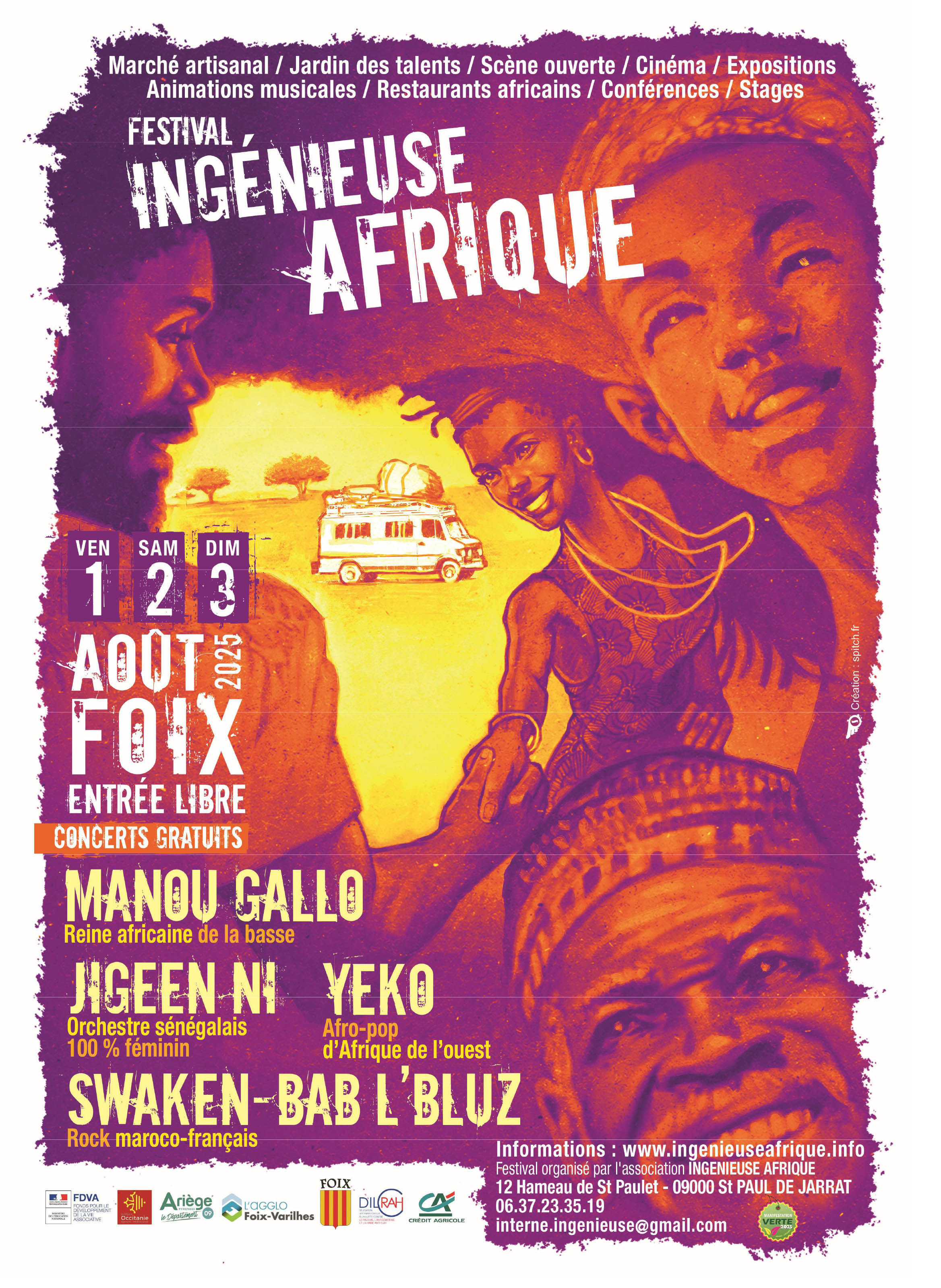 L’édition 2026 du festival Ingénieuse Afrique aura lieu les 7, 8, 9 août, avec son marché artisanal, ses restaurants africains et sa scène ouverte permettant le mélange spontané des artistes, sur le haut des allées de Villote ambiancées par les troupes musicales en déambulation un stand littérature …