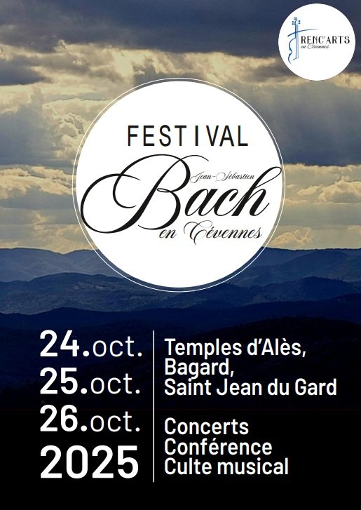 3 jours – 3 lieux. Le festival Bach en Cévennes se déroulera donc du 24 au 26 octobre 2025 dans les temples d’Alès, Bagard et Saint Jean du Gard. Concerts, conférence et culte musical jalonneront ce temps fort avec des artistes professionnels, pour beaucoup de renommée internationale, et des personnalités issues des milieux médiatiques, universitaires…
