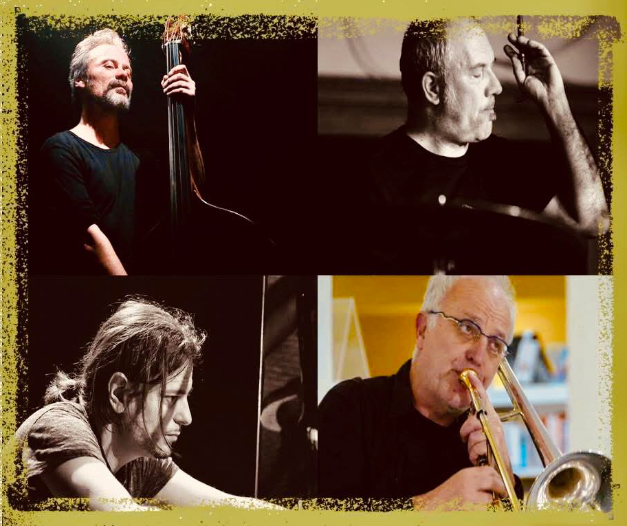 L’arrivée récente du génial tromboniste Yves Robert dans les Pyrénées à très vite insufflé la rencontre entre ces 4 musiciens, figures emblématiques des musiques improvisées d’aujourd’hui. Une musique ou l’électricité et l’électronique côtoient l’acoustique, dans leurs versants les plus débridés et énergiques, mélange de compositions et d’improvisations collectives. La musique que propose ce nouveau quartet oscille entre musique de film, balade dans les bois, envolée dans les nuages et escapade en montagnes et cela avec une force et une élégance sans limite.