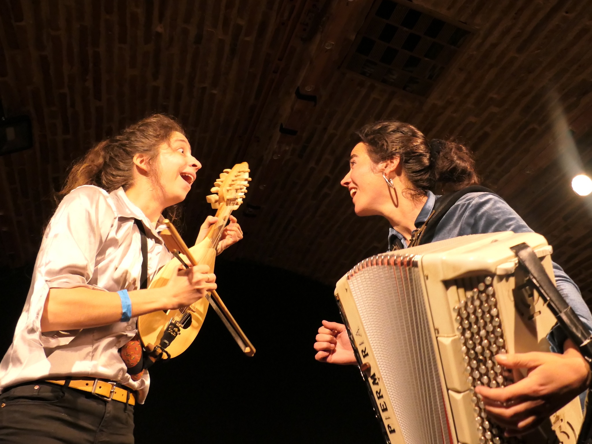 Les deux musiciennes se mettent en scène et explorent les limites de leur instrument respectif tout comme les limites de leur interaction, partageant avec le public l’émotion qui les lie à leur instrument et l’excitation du duo. Ensemble, elles font se rencontrer les différents lexiques qu’elles pratiquent par ailleurs comme les musiques traditionnelles, le free, le jazz, le chant, la musique répétitive… Les compositions du duo sont basées sur l’improvisation et enchevêtrent influences trad et expérimentales.