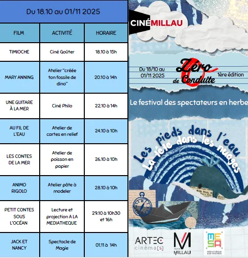 Le Festival « Zéro de conduite » c’est tout au long des vacances au cinéma de Millau. Et il y a même toute une journée à la Médiathèque .