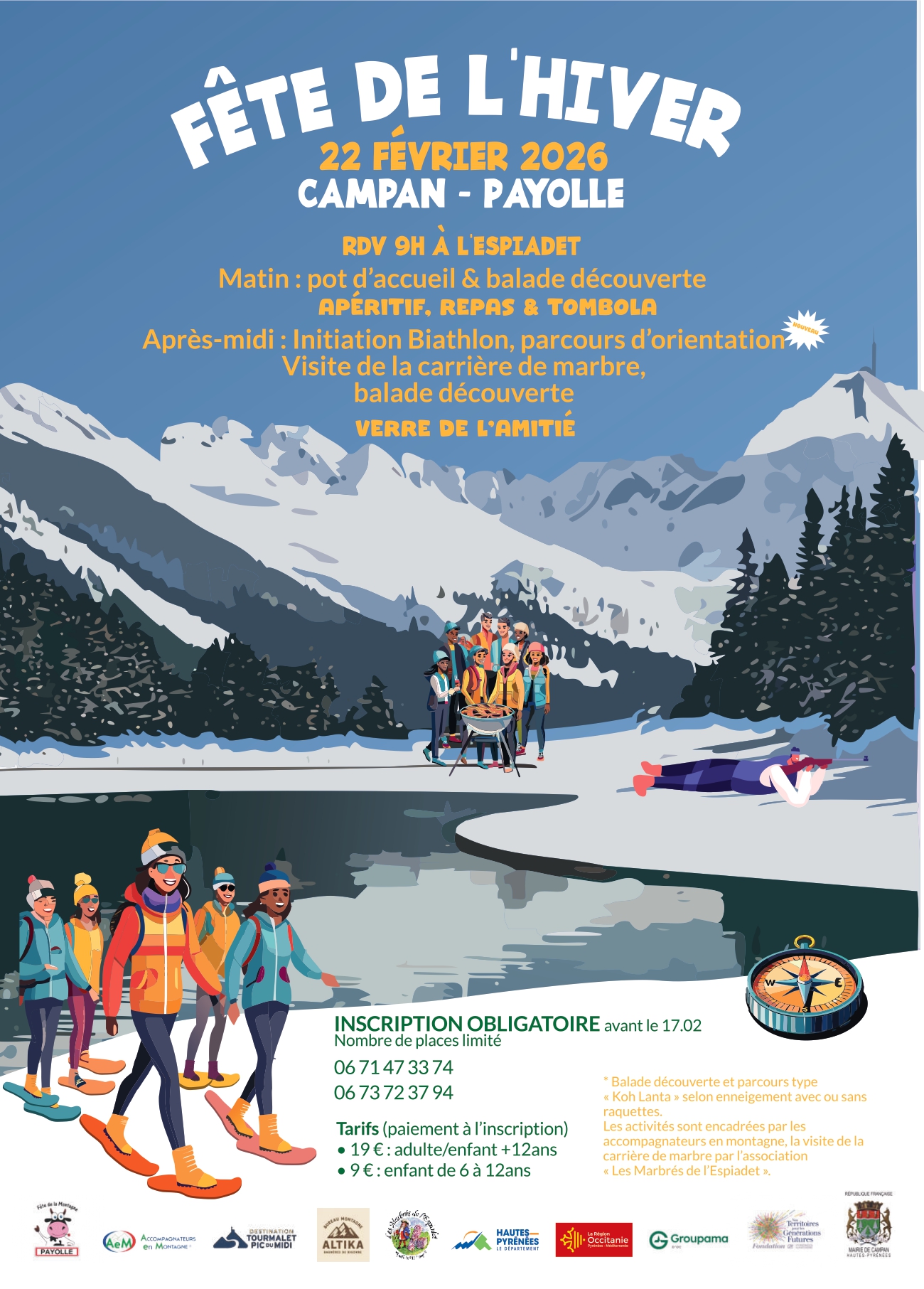Accueil dès 9h à l’Espliadet avec balade découverte, apéritif, repas et tombola. L’après-midi : initiation biathlon, parcours d’orientation, visite de la carrière de marbre et balades. Clôture autour du verre de l’amitié.
