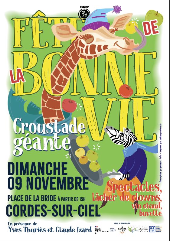 Parce que la vie est belle, parce que la vie est bonne, l’association RectoVerso a le plaisir de vous inviter, dimanche 9 novembre 2025 à partir de 15 h, à la Fête de la Bonne Vie, place de la Bride et sous la halle à Cordes-sur-Ciel.