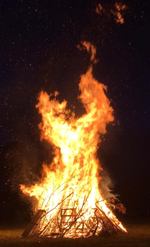 feu de la Saint-Jean à la nuit tombée