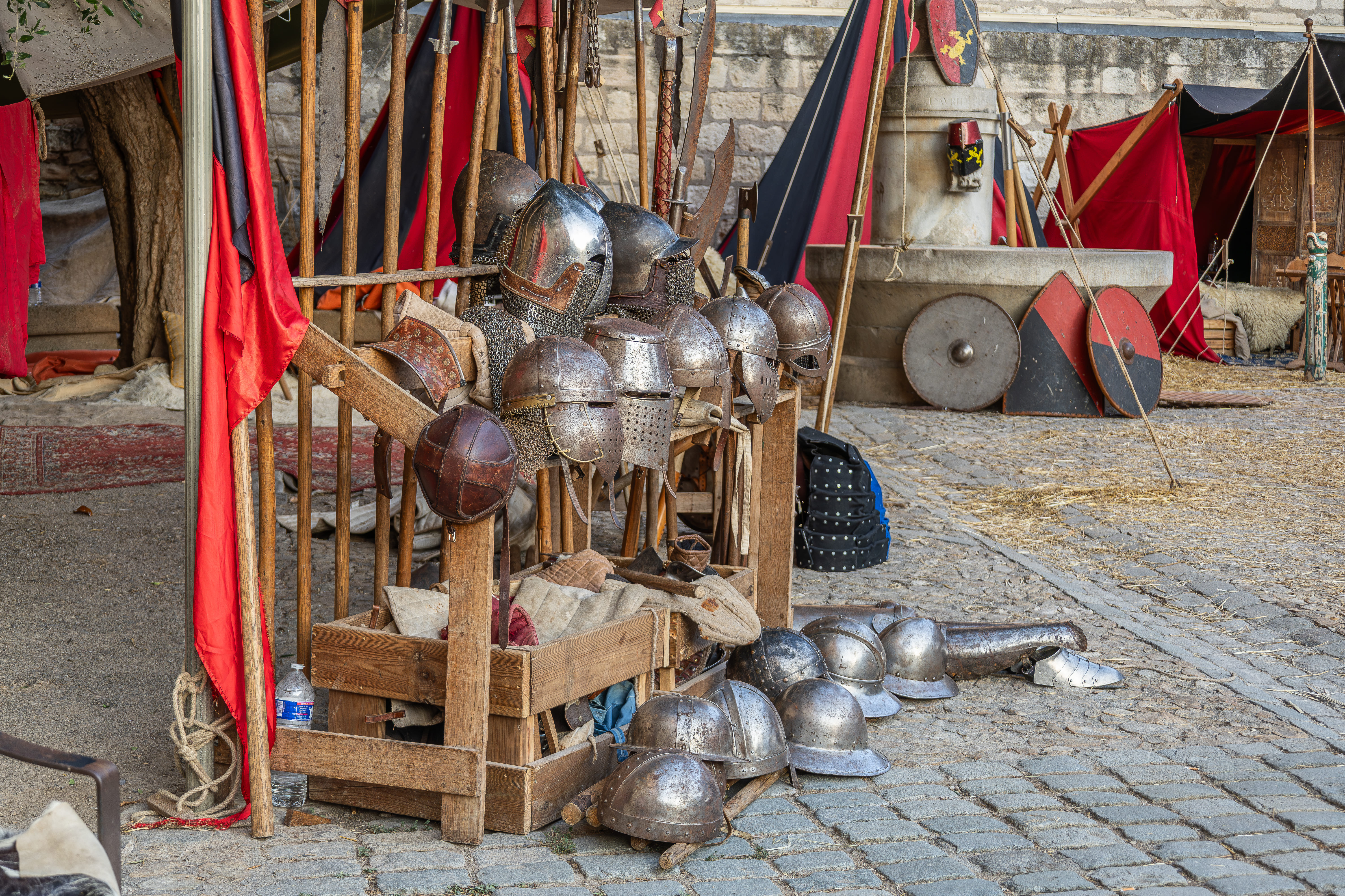 Toute la journée, déambulations musicales, animations dans les camps médiévaux, théâtres de tréteaux, exposition, spectacles de feu dans les rues, mêlées et catapultes à bonbons, démonstrations de machines de guerre, combats, ferme pédagogique, présentation de rapaces etc…