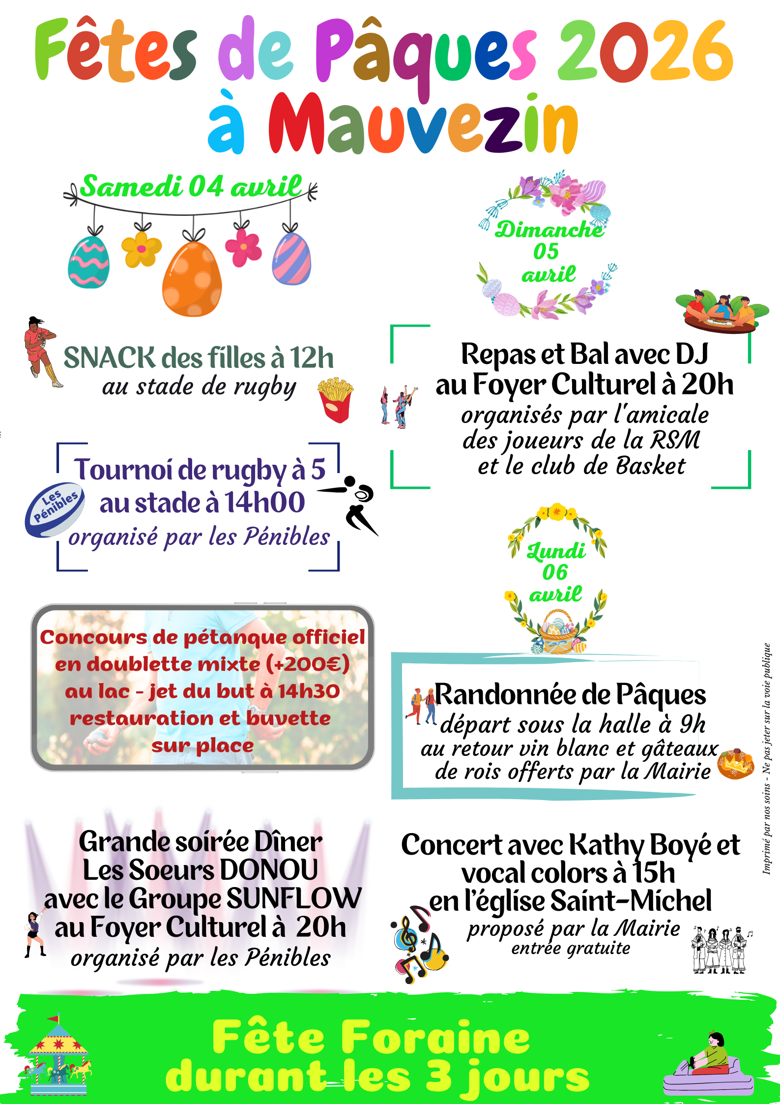 Venez aux fêtes de Pâques à Mauvezin pour trois jours remplis entre matches de rugby, concert et fête foraine.