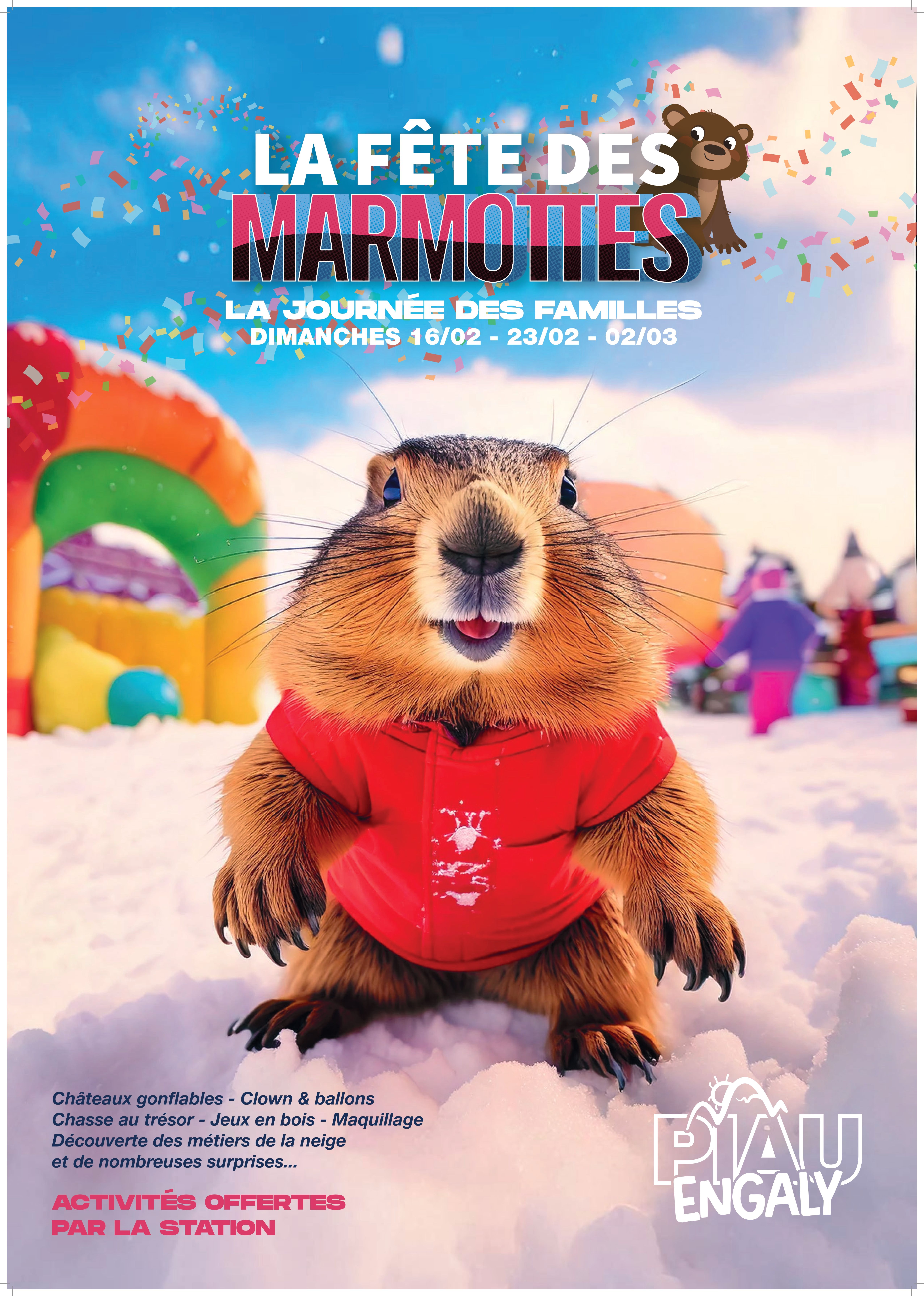Date à noter sur vos agendas : C’est la Fête des Marmottes ou « La Fiesta de las Marmotas » comme disent nos amis et voisins Espagnols!! Eh oui, la Compagnie des Marmottes s’est entretenue avec notre équipe d’animateurs et partenaires d’activités de Piau pour vous préparer une journée 100% famille des plus sympas!!!