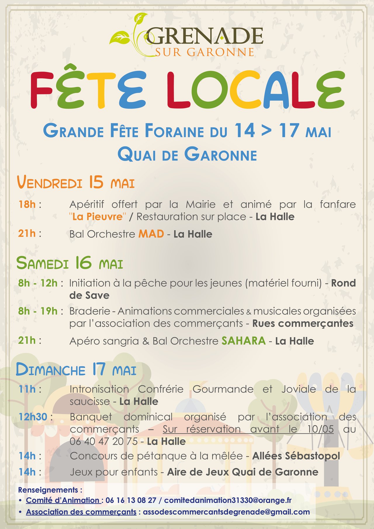 08h00 – 19h00 (rues commerçantes) : Braderie & Animations musicales et commerciales organisées par l’association des commerçants.