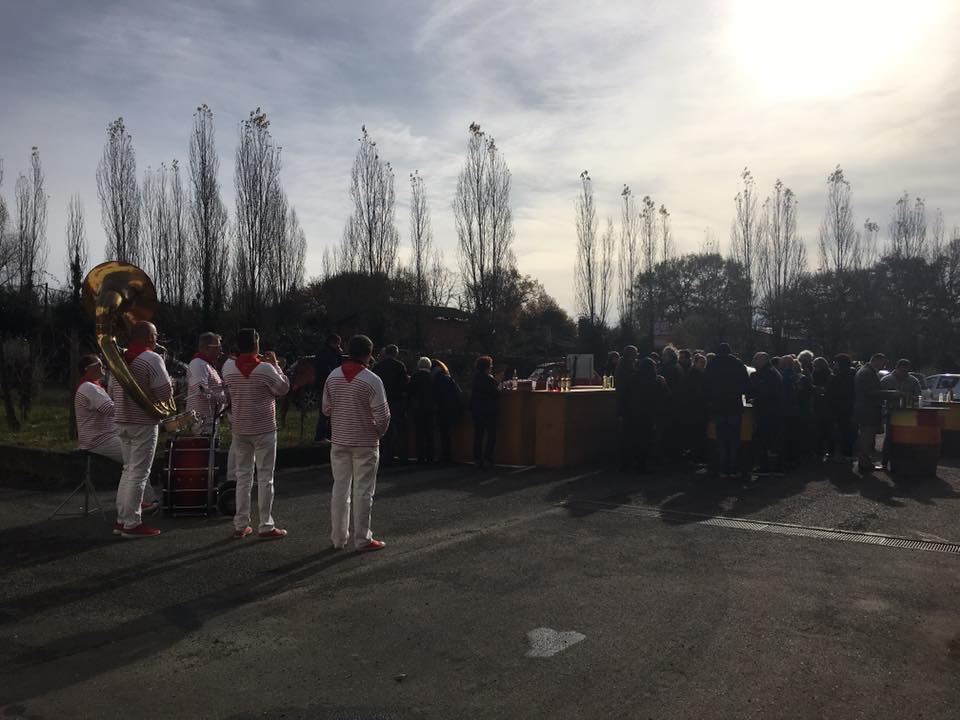 Repas aux pieds des alambics animé par la Banda Chicuelina et servi par les Traiteurs Gascons – 15€ : velouté de potimaron, tartiflette, crème brûlée au Mousquet, café et armagnac