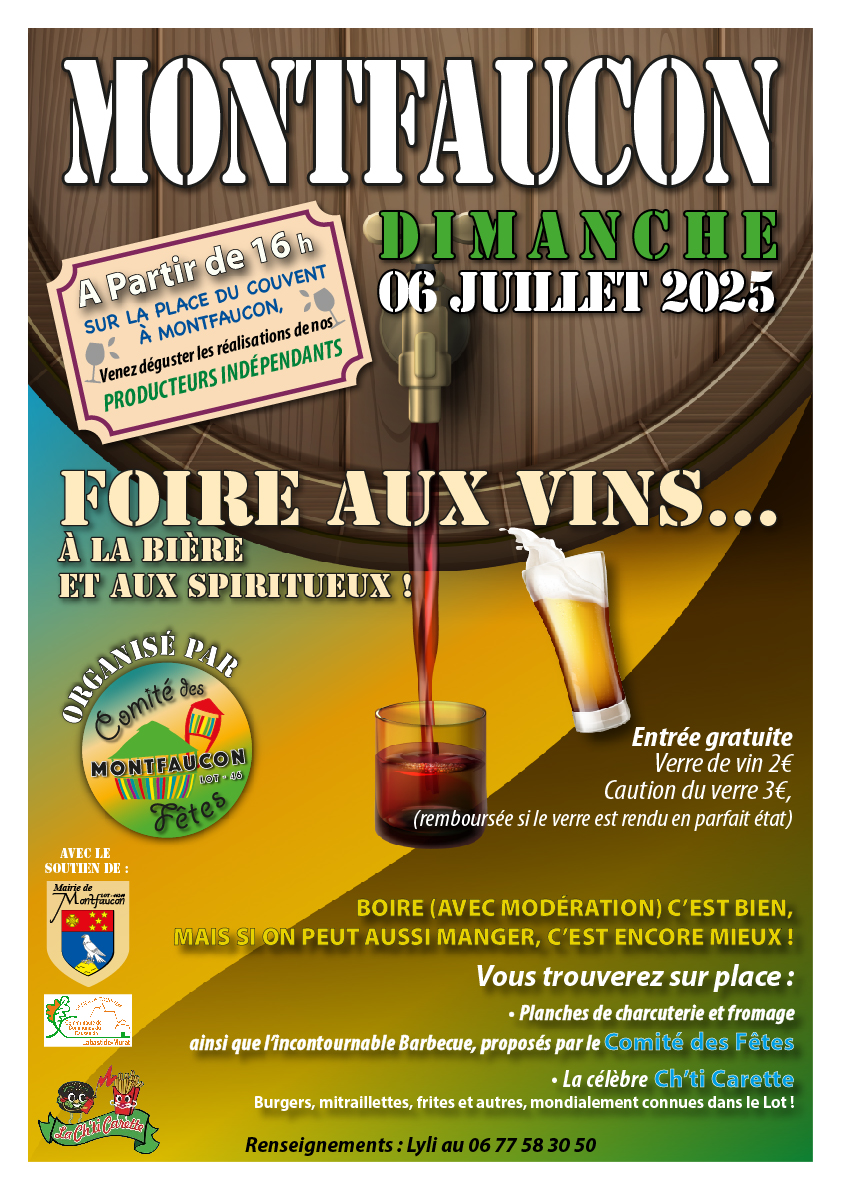 Programme : Boire (avec modération) c’est bien mais si on peut aussi manger, c’est mieux ! Venez rencontrer des viticulteurs, brasseurs et producteurs de la région. Le comité des fêtes assure la restauration avec son fameux barbecue et ses planches apéro végé et non végé ! La Ch’ti Carette vous propose ses burgers, frites et autres. Les verres sont consignés, remboursés si rendus en parfait état.