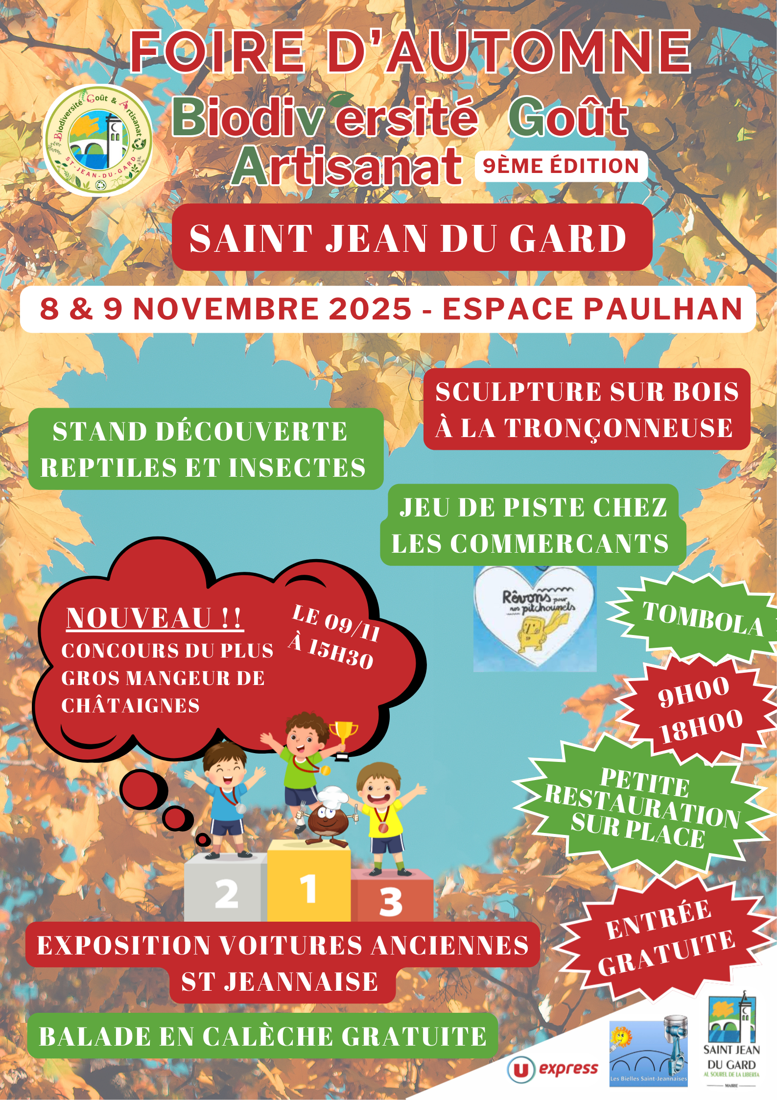 L’Automne s’installe, et la foire d’automne de St Jean du Gard aussi ! Cette nouvelle édition promet un week-end haut en couleurs, en saveurs et en découvertes avec au programme de l’artisanat local, des producteurs et des pépiniéristes.