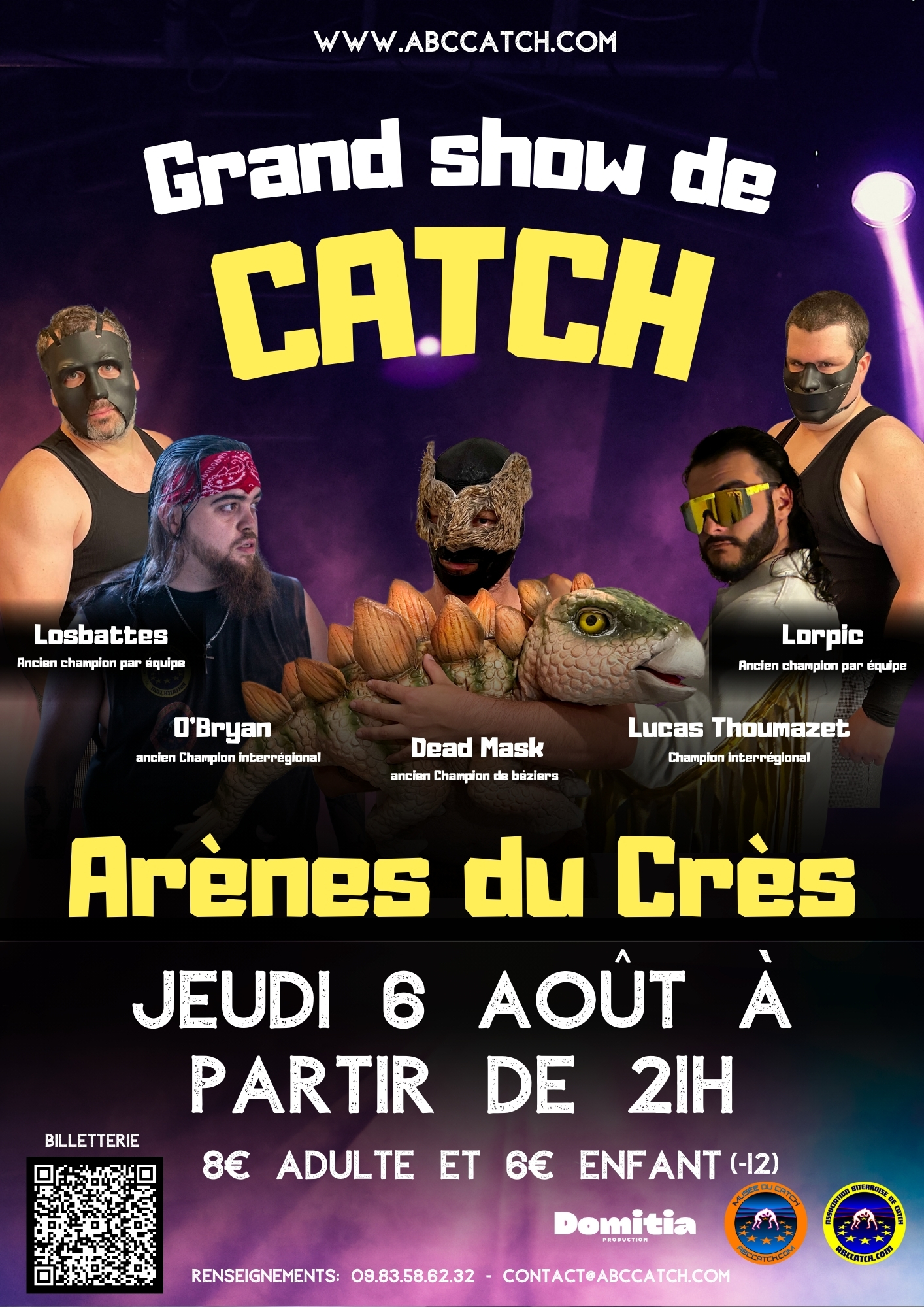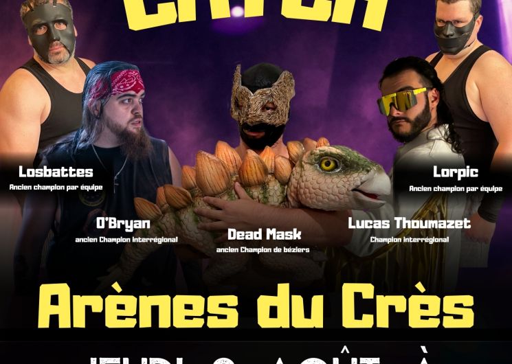 Préparez-vous pour un événement sportif spectaculaire ! Nous sommes ravis de vous annoncer le Grand Show de Catch des Arènes du Crès pour le jeudi 6 août 2026 à 21h ! Cet événement promet d’être une célébration exceptionnelle de la force, du talent et de l’esprit sportif.