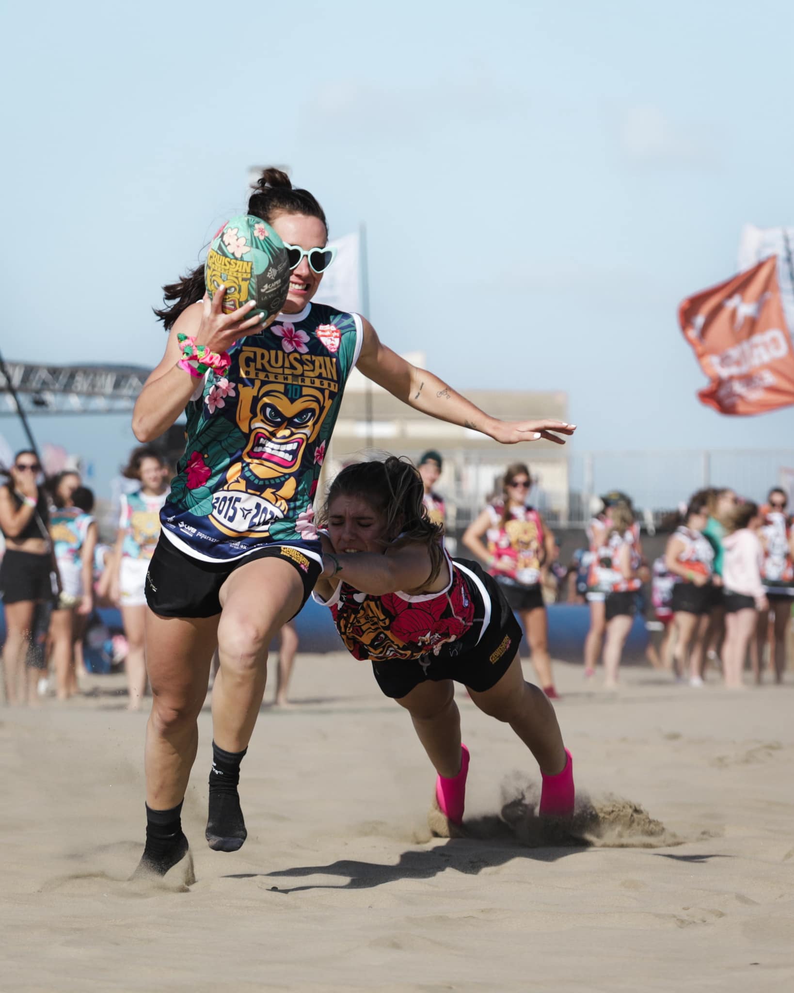 Ici, pas de mêlées pesantes ni de crampons, juste de la vitesse, du jeu et une bonne dose de fair-play. Pros, anciens internationaux, amateurs et amis venus en bande partagent le même terrain et le même esprit : celui de la convivialité, de l’engagement… et du sable plein les dents.